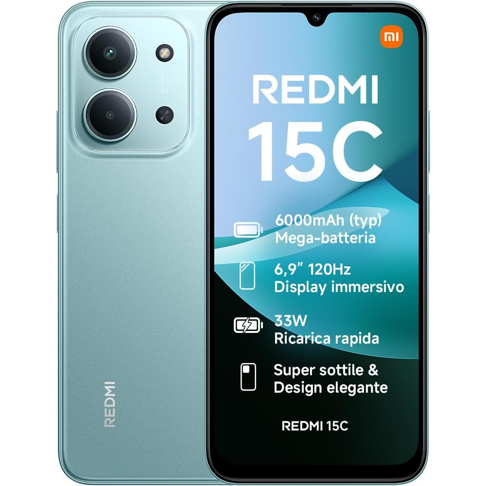 Il Redmi 15C è dotato di uno schermo LCD HD+ da 6,9 pollici che supporta una frequenza di aggiornamento fino a 120Hz. Lo schermo adotta un design con tacca a forma di goccia, con la fotocamera frontale incorporata al suo interno.