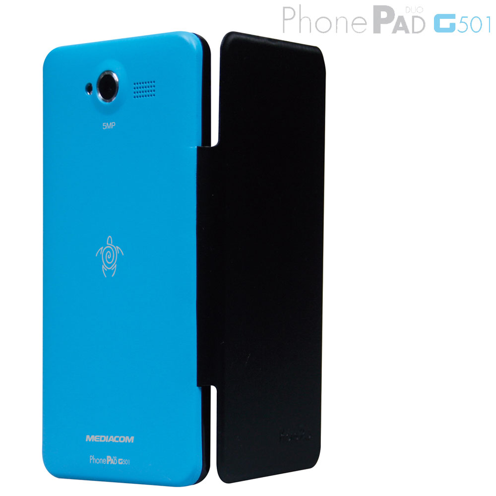 Descrizione Prodotto: Mediacom Flip Case per PhonePad Duo G501 Azzurro in elegante ecopelle .