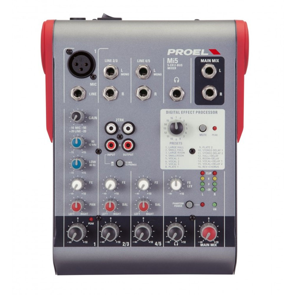 La nuova Serie Mi è stata creata da PROEL per rispondere all’esigenza di mixer compatti con un elevato numero di ingressi ed una qualità audio superiore ad un prezzo alla portata di tutti. La serie comprende 3 modelli con 6, 10 e 12 canali che includono, in dimensioni ridotte, un gran numero di ingressi ed un set completo di funzioni ‘intelligenti’ in grado di soddisfare la maggior parte delle applicazioni. Ideati e progettati in Italia dal Dipartimento Ricerca e Sviluppo PROEL, i mixers Mi sono alloggiati in eleganti case in metallo ultraresistenti, in grado di garantire un utilizzo prolungato senza problemi. Mi5, offre in un formato ultracompatto, il suono e la qualità delle grandi consolle professionali, garantendo la massima precisione e pulizia nel missaggio. Malgrado le sue ridotte dimensioni include un DSP avanzato in grado di fornire a musicisti e performers effetti di elevata qualità.