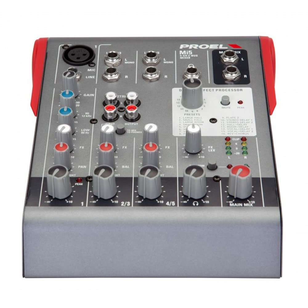 - MIXER PROEL Mi5 PASSIVO 4 CANALI MIC/LINE EQ-2 BANDE + 4 CANALI STEREO/LINE CON EFFETTI DSP ALIMENTAZIONE PHANTOM