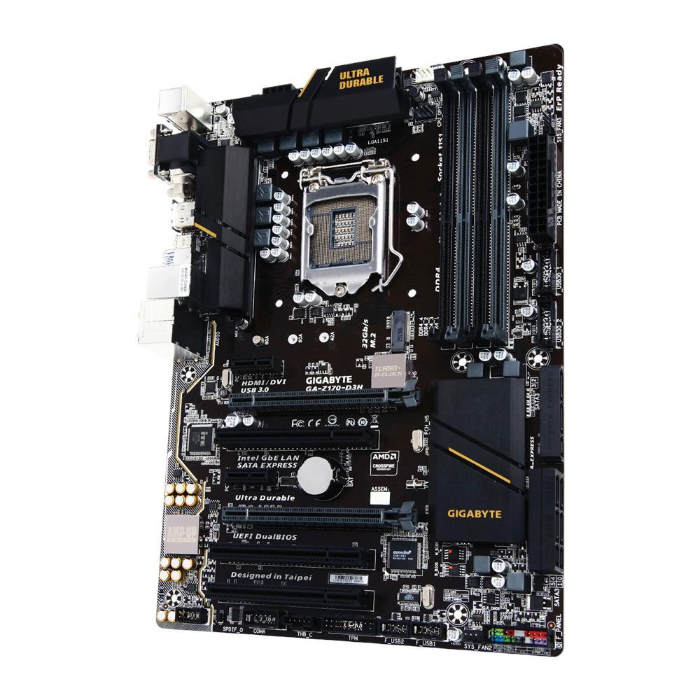 La scheda madre GA-Z170-D3H (rev. 1.0) di Gigabyte, in fattore di forma ATX, dispone del chipset Z170 compatibile con i processori Skylake su socket LGA 1151. La scheda supporta memorie DDR4, dual-channel, non-ECC, Unbuffered, fino ad un massimo di 64 GB con frequenze fino a 3466 MHz (OC) con supporto alla tecnologia Intel XMP. La scheda è certificata Ultra Durable garantisce quindi performance, efficienza e supporto alle più recenti tecnologie. GA-Z170-D3H (rev. 1.0 è studiata per offrire il massimo coinvolgimento in ambito Gaming, supporta la tecnologia multi-GPU AMD CrossFire, implementa la tecnologia GbE LAN con cFosSpeed che gestisce ina maniera automatica la priorità di banda della varie applicazioni, riduce la latenza e mantiene i livelli di ping estremamente bassi per un’esperienza multiplayer senza paragoni. Il comparto audio preamplificato consente di sfruttare a pieno la potenza dei propri headset per non farsi cogliere mai impreparati e anticipare le mosse dei propri avversari. Infine supporta l’applicazione Easy Tune di Gibayte per gestire tutti i parametri della scheda e ottimizzarla a seconda delle pro