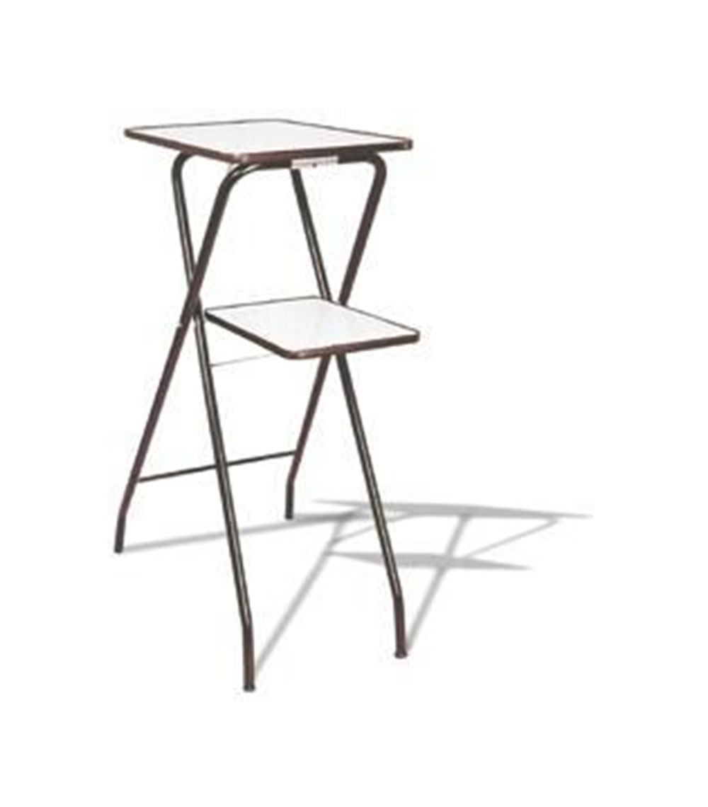 Sono pieghevoli e si richiudono per occupare pochissimo spazio. Dispongono di due comodi piani di appoggio. Il piano di appoggio superiore supporta fino a 10kg.