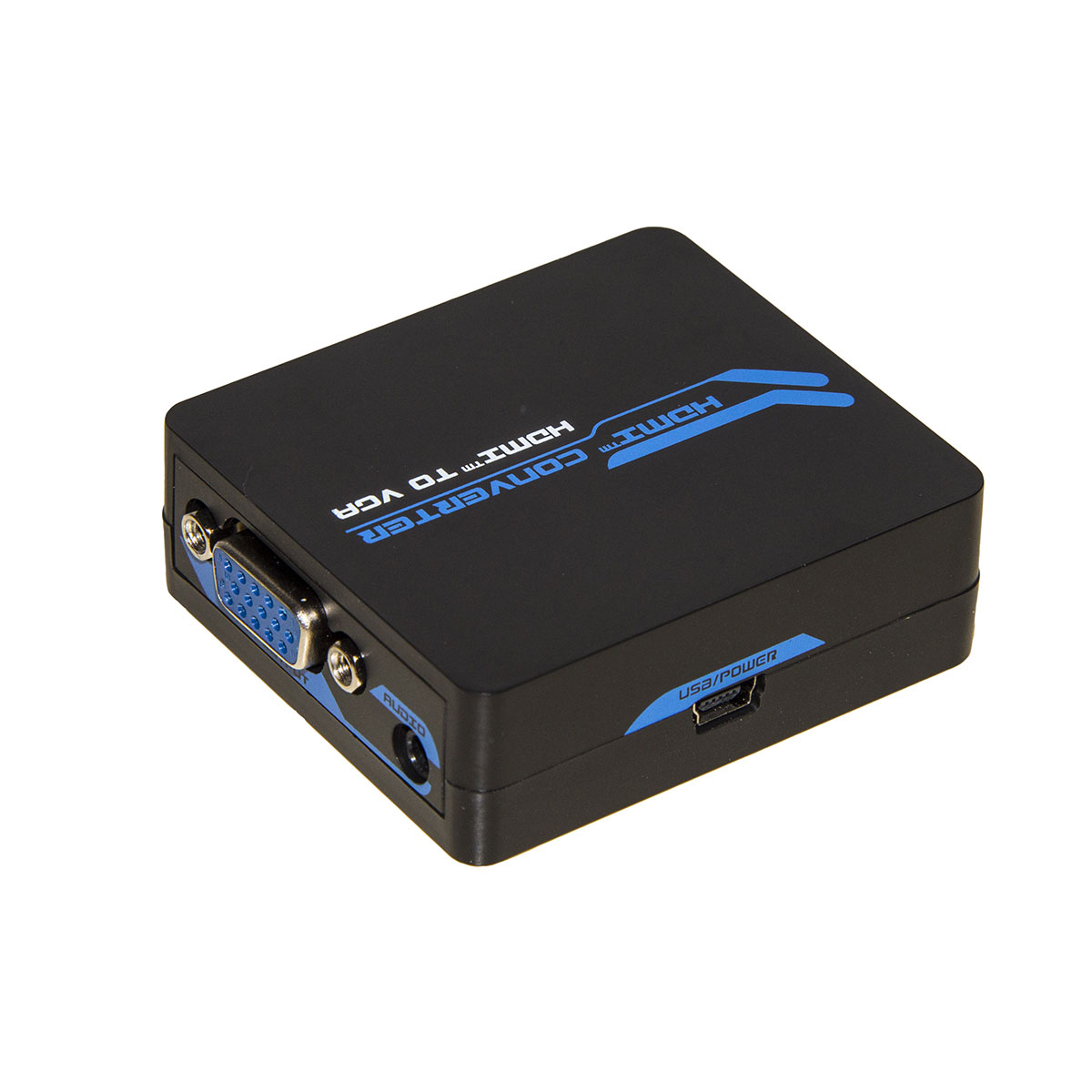 CARATTERISTICHE Questo convertitore da HDMI™ a VGA converte segnali video digitali HDMI™ in segnali analogici VGA, prendendo i segnali in entrata dal vostro apparecchio e convertendoli in segnali analogici alla stessa risoluzione. Il convertitore inoltre separa i flussi audio dal segnale HDMI (HDMI™ LPCM 2-Channel) e lo converte in audio stereo analogico che può essere usato nei video VGA. Con una risoluzione supportata fino a 1080p, questo convertitore è una soluzione perfetta per la connessione di schede video (desktop o laptop) o per console di gioco o ricevitori home theatre che hanno una uscita HDMI verso un video VGA Facile da usare, si installa in pochi secondi senza settaggi e convertitori aggiuntivi. Formato audio in uscita: 2 Canali LPCM Supporta HDCP 1.3 Supporta una lunghezza di banda in input HDMI™ di 225 MHz/2.25 Gbps per canale (6.75 Gbps tutti i canali) Risoluzione HDMI™: 480p@60Hz, 720p@50/60Hz, 1080p@60Hz, 800x600@60Hz, 1024x768@60Hz, 1920x1080@60Hz Risoluzione VGA: 640x480@60Hz, 1280x720@60Hz 1920x1080@60Hz, 800x600@60Hz, 1024x768@60Hz