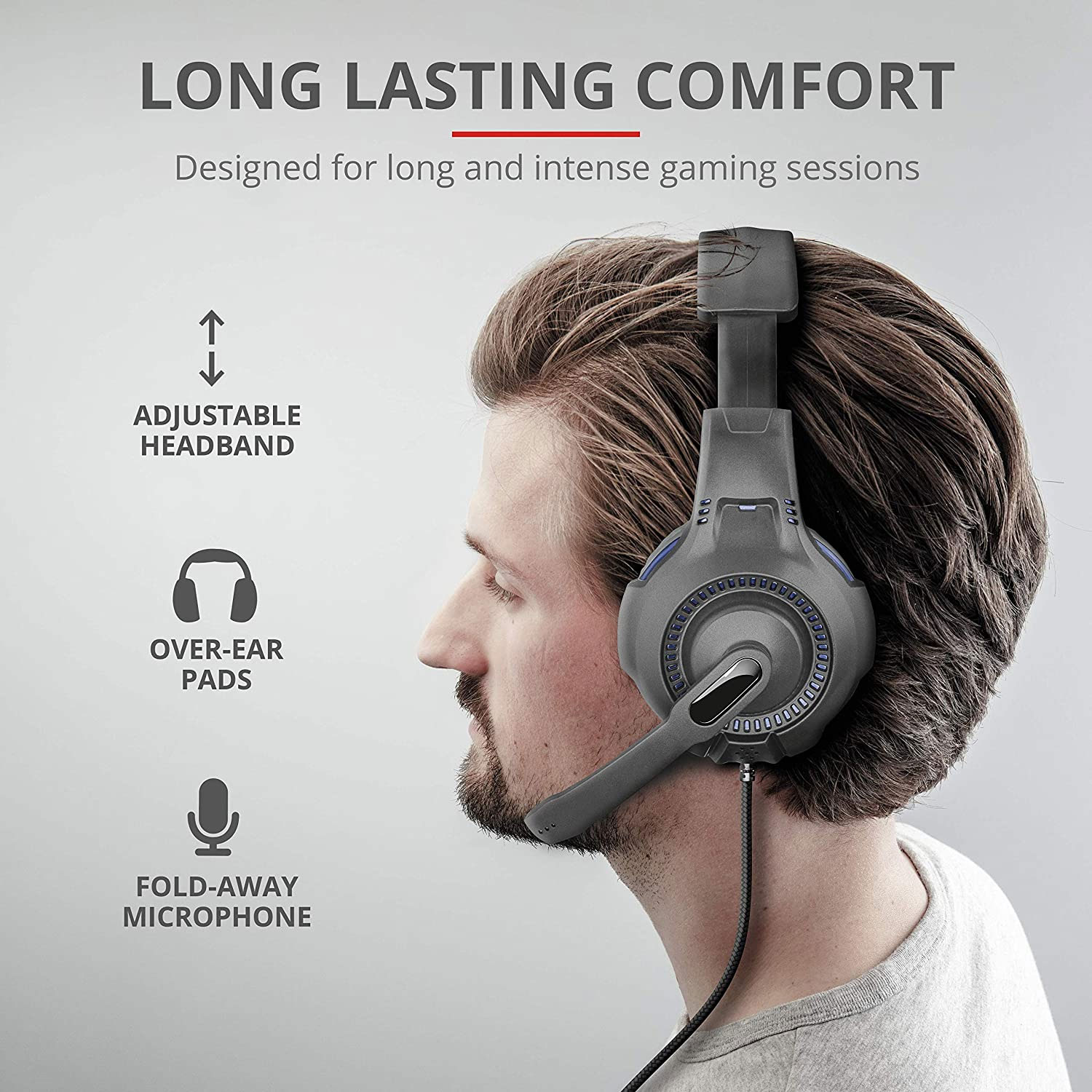 Cuffie Headband - Doppio auricolare - Telecomando integrato con controllo volume ed esclusione microfono - Mute control. Prolunga di 20 cm per PC /laptop. Per : PC / PS4 / Xbox One / Nintendo Switch