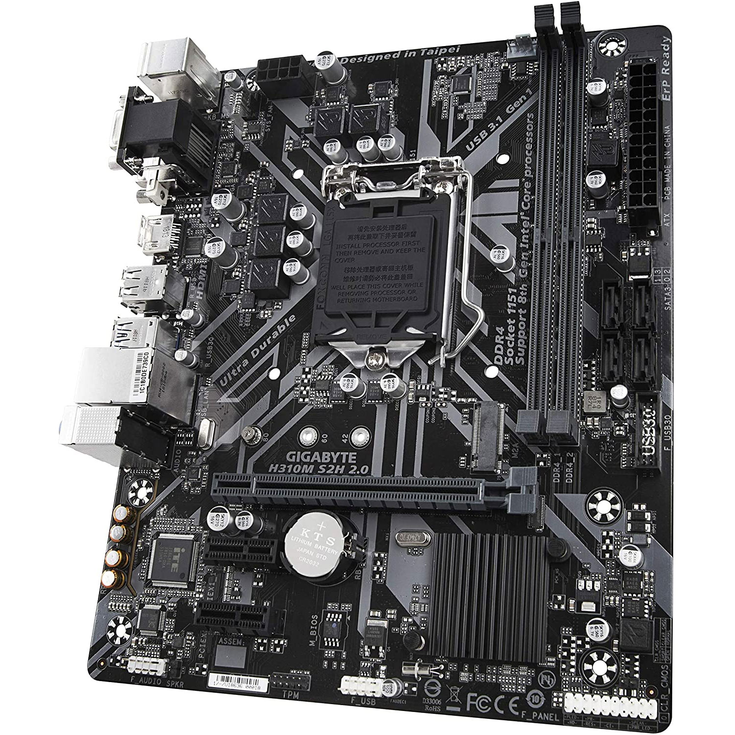 Gigabyte H310M S2H 2.0. Produttore processore: Intel, Presa per processore: LGA 1151 (Presa H4), Processori compatibili: Intel Celeron , Intel Core i3, Intel Core i5, Intel Core i7, Intel Pentium . Tipi di memoria supportati: DDR4-SDRAM, tipo di slot di memoria: DIMM, Velocità di memoria supportate: 2133,2400,2666 MHz. Interfacce dell'unità di archiviazione supportate: M.2,Serial ATA III, Tipi di unità di archiviazione supportate: HDD,SSD. Connettore USB: USB tipo A. Tipo di interfaccia Ethernet: Gigabit Ethernet