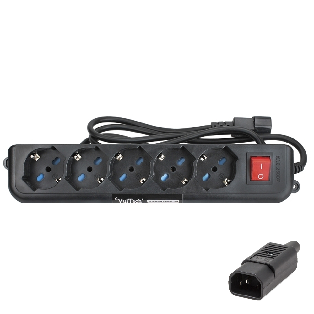 - MULTIPRESA 5 POSTI 10A-16A Bipasso/Schuko CON SPINA IEC