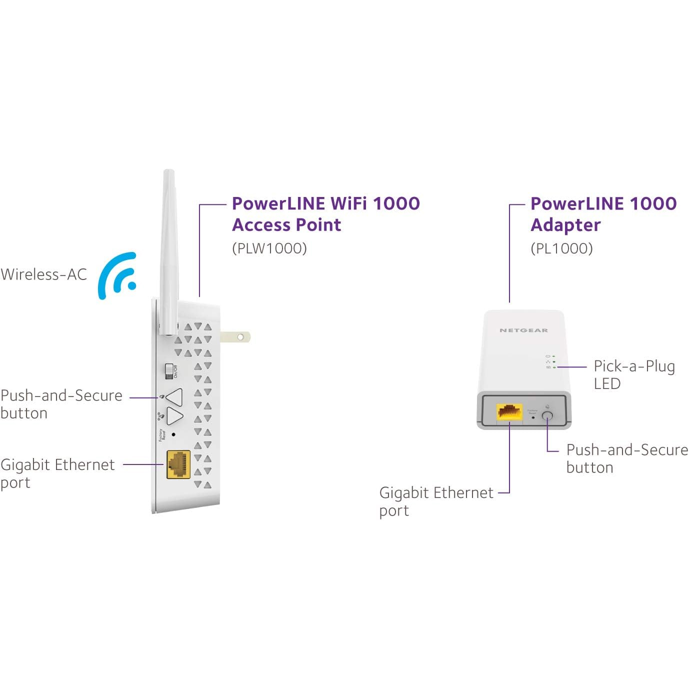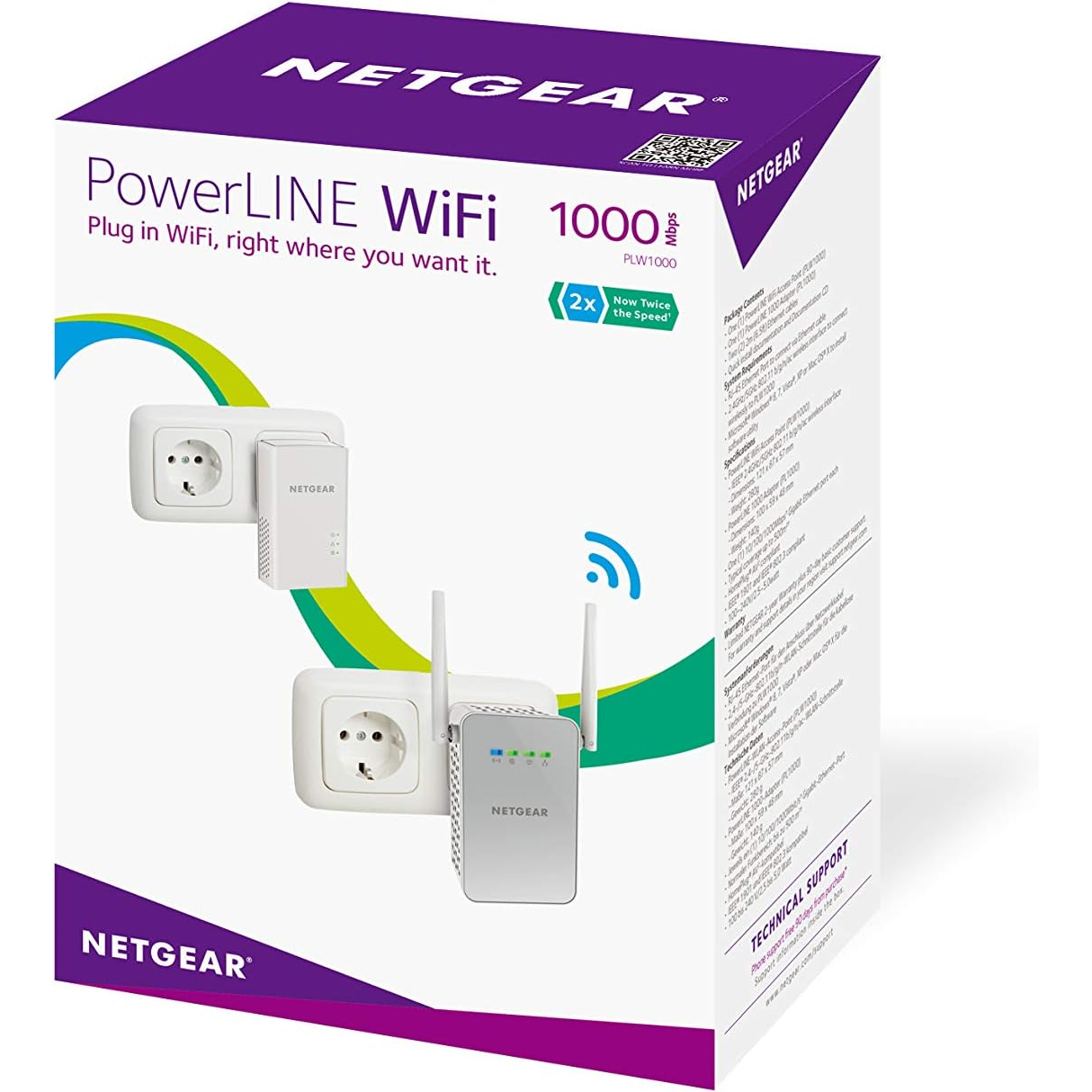 Kit Powerline AV 1000 Ethernet Bridge con Access Point WiFi per estendere la vostra rete a 1 Gbps con Homeplug AV2. Il kit è composto da 2 dispositivi