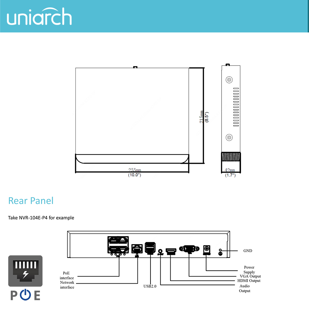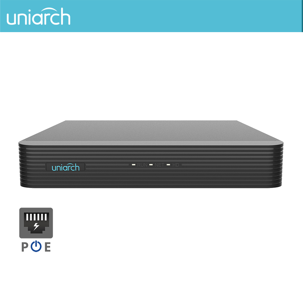 NVR Uniarch 4-canali 1-SATA Ultra 265, 8 MP (4K) Serie E2 - 4 PORTE POE