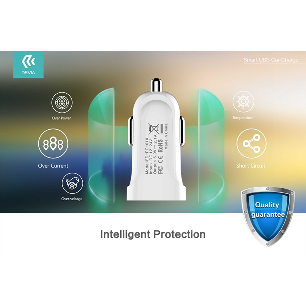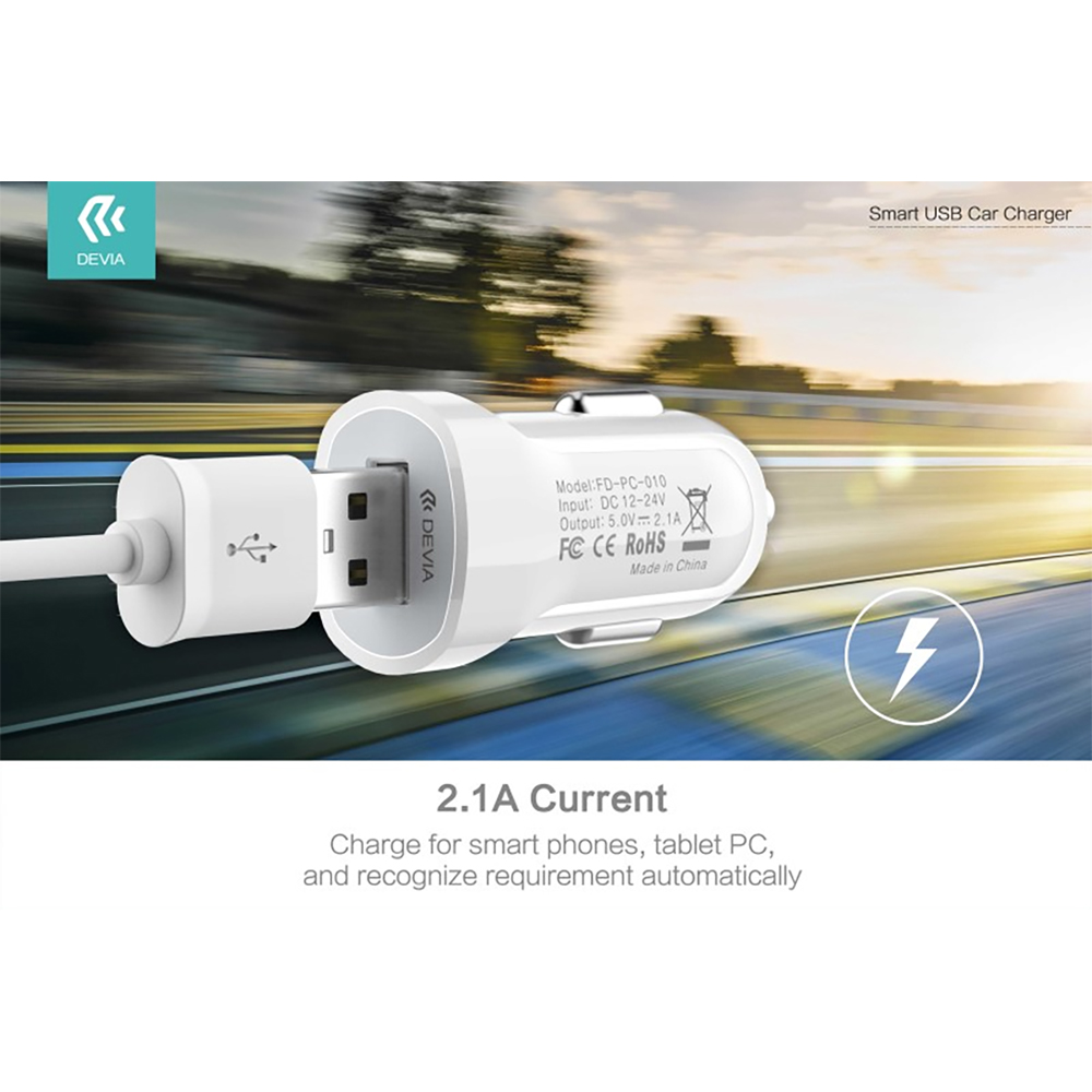 • CARICABATTERIE DA AUTO DEVIA DECHS097W 2.1A USB SMART PER TABLET, SMARTPHONE