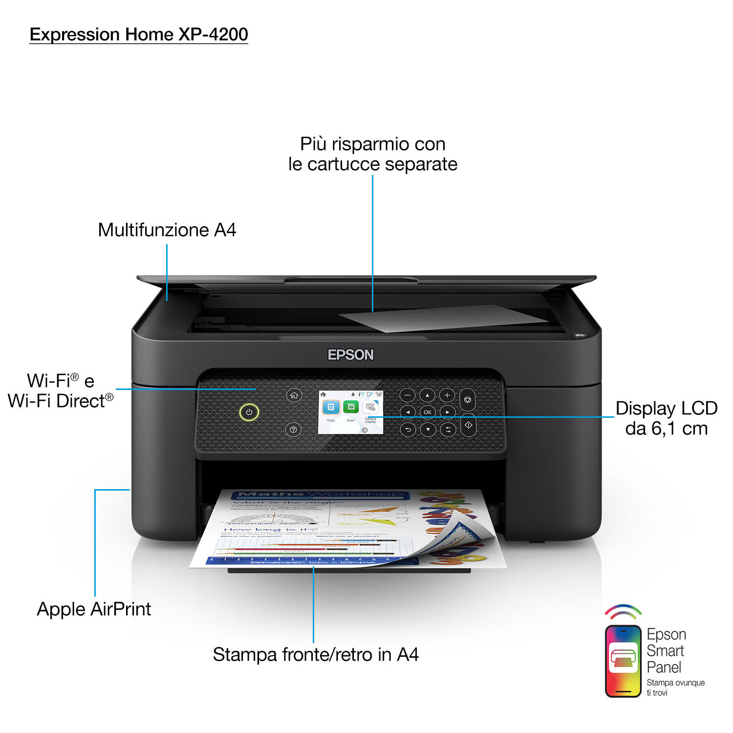 - MULTIFUNZIONE EPSON EXPRESSION HOME XP-4200 USB, Wi-Fi, Wi-Fi Direct, USB A4 DISPLAY LCD 6.1 copia + stampa + scansione