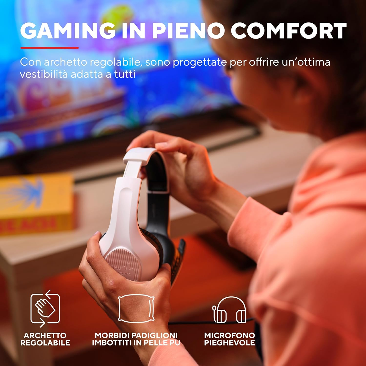 Anche nelle sessioni di gaming più intense, queste cuffie stanno al loro posto. Con archetto regolabile, sono progettate per offrire un ottima vestibilità adatta a tutti.