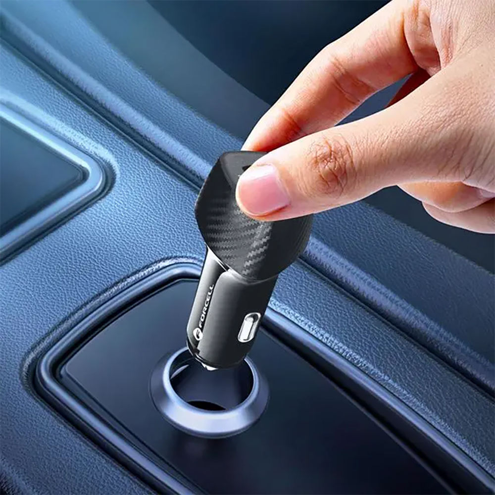 - Caricabatterie da auto Forcell con finitura effetto carbonio
