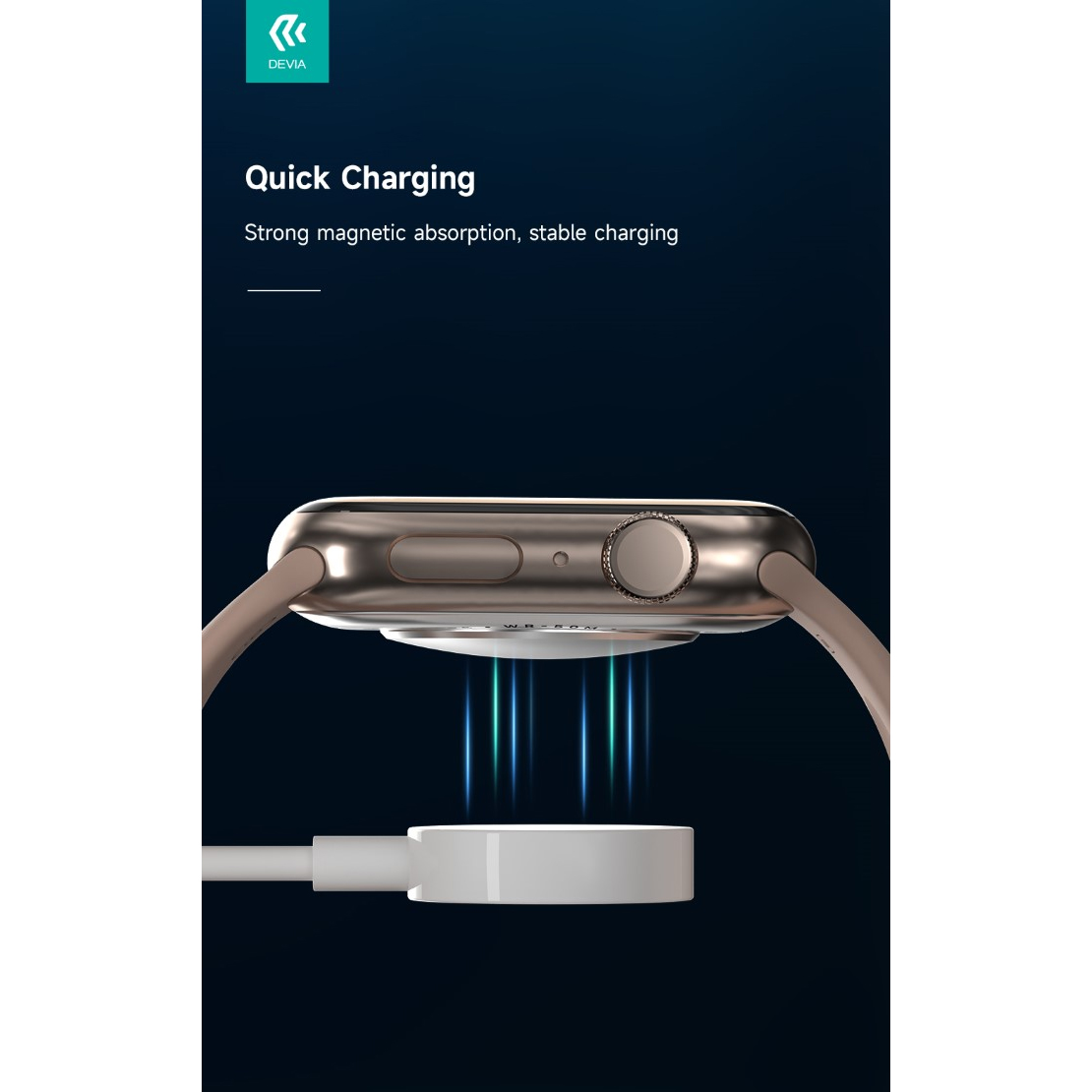 Cavo di ricarica per Apple Watch Con connettore Tipo-C Semplifica al massimo la ricarica di apple watch: ti basta avvicinare il connettore al retro della cassa e i magneti interni lo faranno scivolare al suo posto automaticamente.