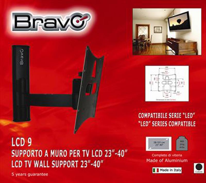 Elegante supporto da parete per televisori LCD e LED da 23" a 40", on un'inclinazione di -10°/+15° ed una rotazione di circa 45°.
