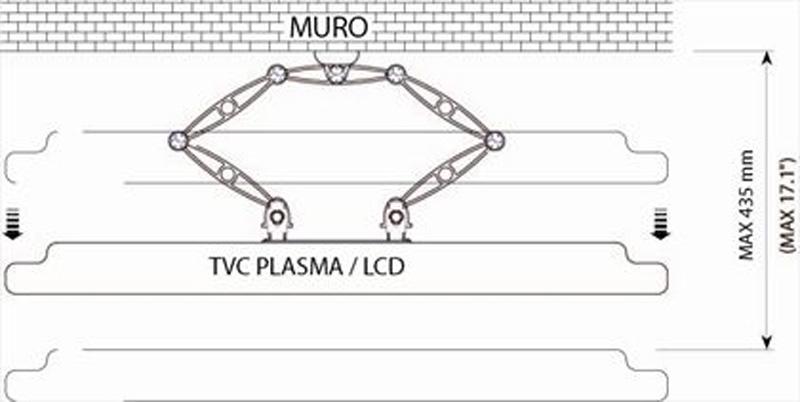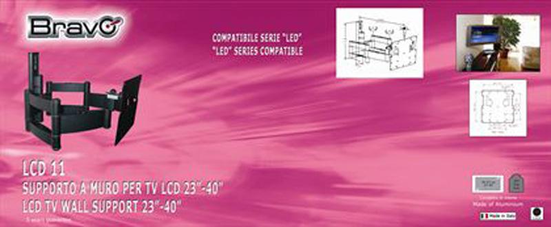 Elegante supporto da parete per televisori LCD e LED da 23" a 40", con un'inclinazione di circa 15° ed una rotazione di circa 45