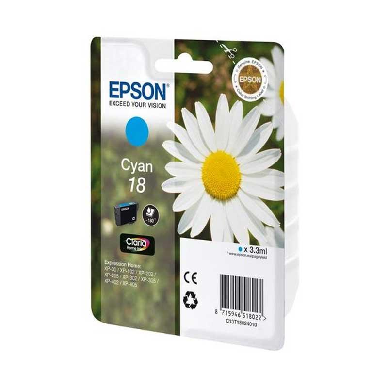 • CARTUCCIA INK-JET EPSON CIANO MARGHERITA 18 ORIGINALE C13T18024010 Expression Home XP-102, XP-202, XP-205, XP-30, XP-302, XP-305, XP-402, XP-405