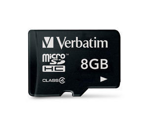 Verbatim Micro SDHC 8GB - Class 4. Capacity: 8192 MB, Tipo flash card: Micro Secure Digital High-Capacity (microSDHC), Velocità di lettura: 4 MB/s. Peso: 0.3 g, Larghezza: 15 mm, Profondità: 11 mm. Peso incluso imballo: 15 gLe schede di memoria form factor più piccole attualmente disponibili sono le microSDHC, progettate specificamente per telefoni cellulari. Questa sottile scheda di memoria consuma molto poco, non compromettendo quindi, la durata della batteria dei cellulari. Può essere utilizzata anche per dispositivi GPS, lettori MP3, fotocamere digitali e computer palmari.
