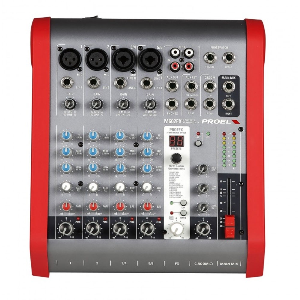 Dopo aver fornito per anni a migliaia di utilizzatori soddisfatti i migliori strumenti di missaggio, abbiamo deciso di rinnovare la nostra Serie M con un ampio assortimento di novità. I nuovi mixer compatti Series M sono stati aggiornati con caratteristiche avanzate e dotati di un nuovo raffi nato design. Oltre a mantenere la qualità audio superiore, il set completo di funzioni e il numero di ingressi MIC più elevato della categoria, che sono stati i punti di forza della serie precedente, abbiamo introdotto una serie di funzioni ‘intelligenti’ aggiuntive, tra cui il routing USB ed i COMPRESSORI sui canali di ingresso. Tutti i modelli includono uno dei migliori processori di eff etti della categoria, il DSP PROFEX a 24 bit di PROEL, in grado di fornire 256 presets di qualità superiore (inclusi mono e stereo TAP DELAY e TAP DELAY + REVERB) con un comodo display LCD. Ideati e progettati in Italia dal Dipartimento Ricerca e Sviluppo PROEL, i mixers Serie M sono alloggiati in eleganti case in metallo ultra-resistenti con fianchi in ABS, in grado di garantire un utilizzo prolungato senza problemi. Caratteristica unica nella categoria, tutti i modelli includono di serie sia la borsa imbottita per il trasporto che gli adattatori per il montaggio in rack standard da 19”. Il super-portatile M602FX, con due canali mono e due canali stereo, fornisce all’utilizzatore più esigente tutte le funzioni necessarie per mixare un numero limitato di canali con la massima accuratezza.