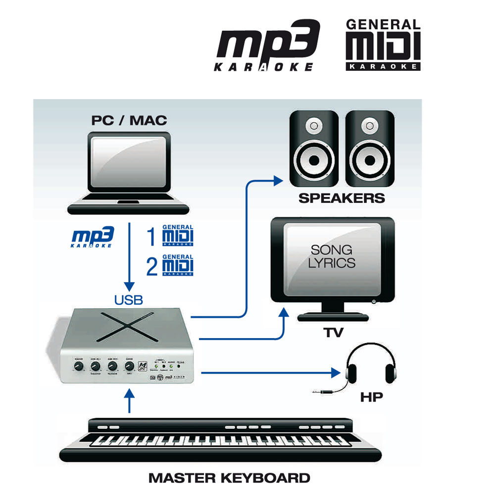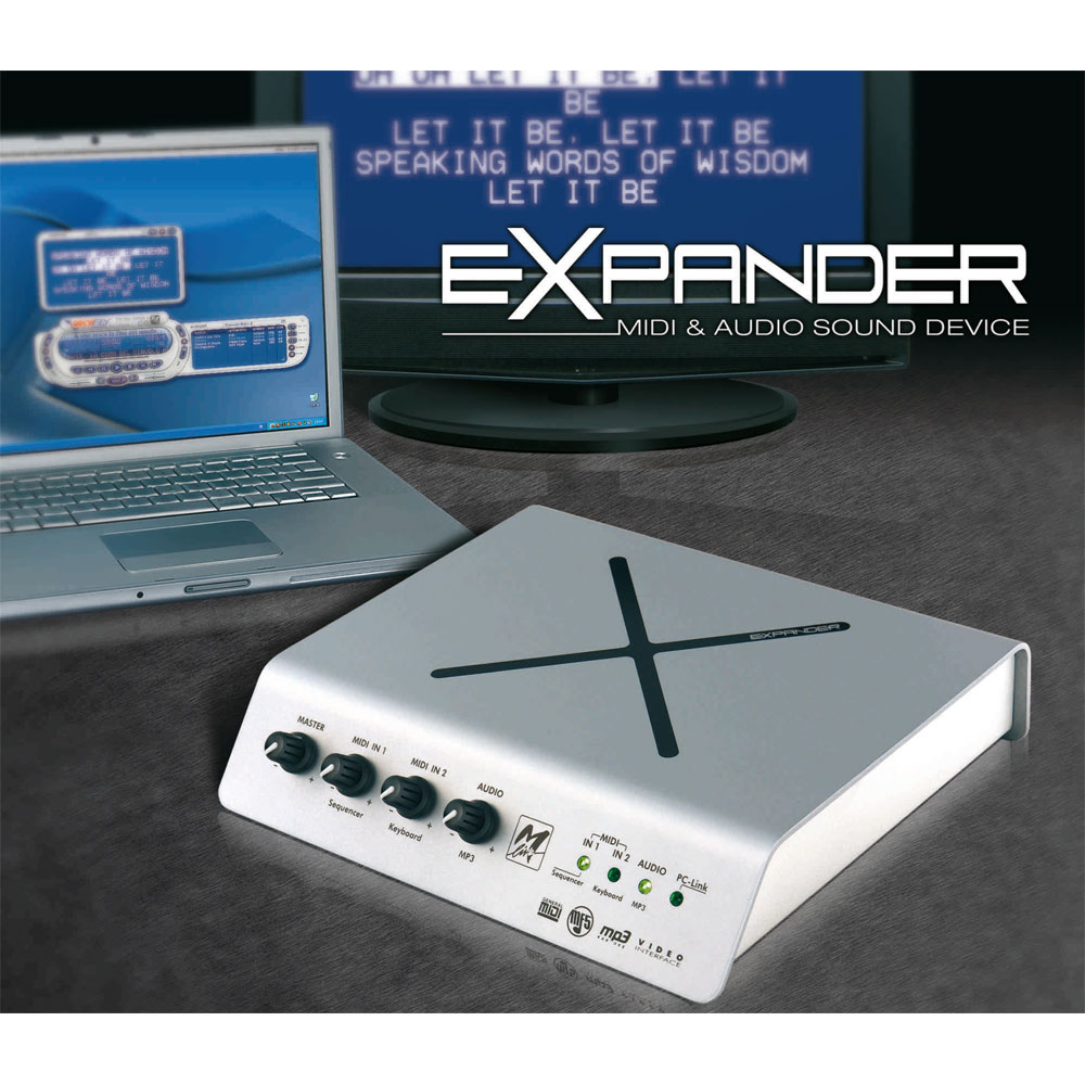 Con EXPANDER puoi suonare Midi e Audio dal tuo Computer con un solo cavo USB e qualità professionale.Con la sua interfaccia video permette di sdoppiare l'uscita del Computer e mostrare i testi delle canzoni sullo schermo TV.