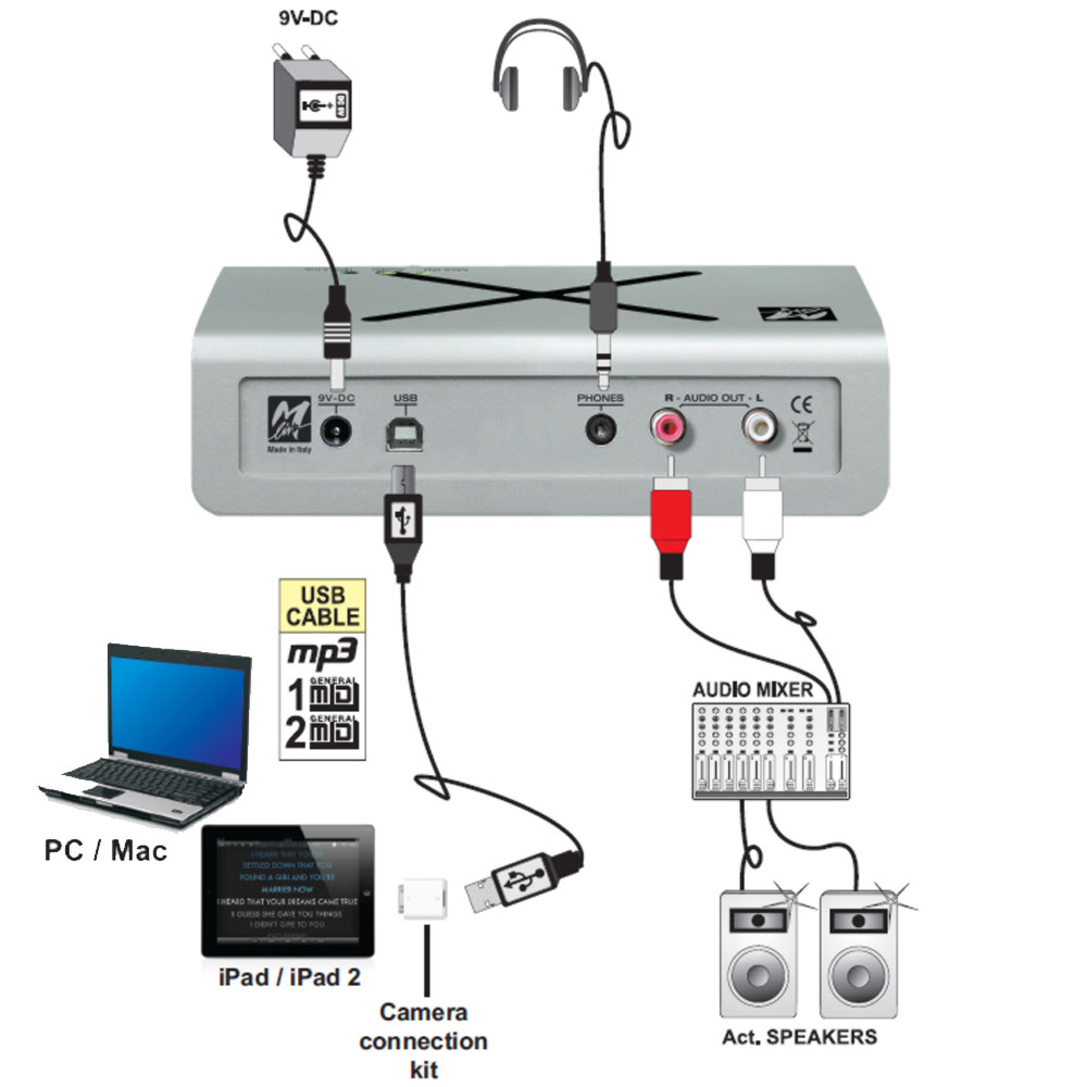 X-Light 2 è un modulo Plug & Play, semplicissimo da usare: lo colleghi con il cavo USB al tuo computer ed è fatta. Non necessita di alimentatore esterno*, e puoi collegarlo al tuo impianto professionale o alle casse di casa debitamente amplificate.