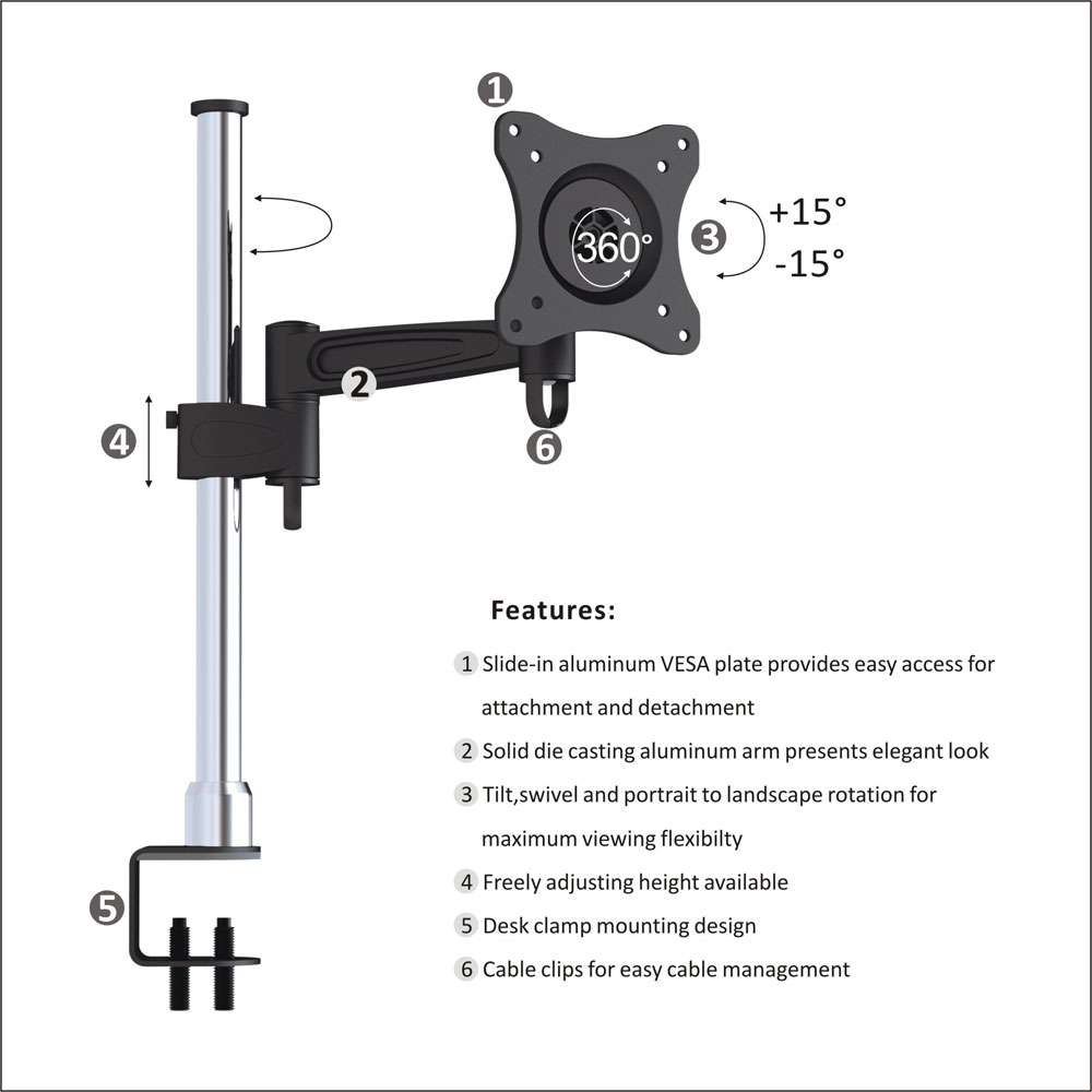 Monitor Desk Mount - Facilmente installabile, è l'ideale per la casa, l'ufficio e per altre particolari applicazioni - non è necessario praticare alcun foro.