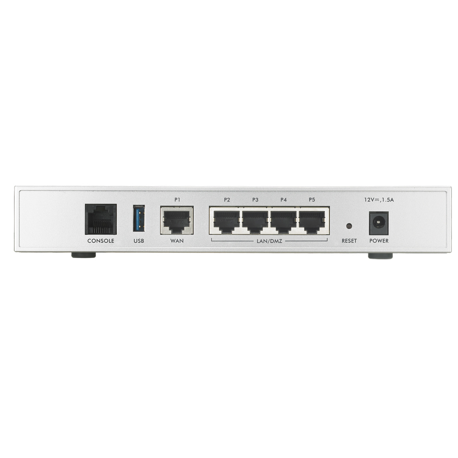 ZyXEL USG-20. Algoritmi di sicurezza supportati: 3DES, DES, Supporto VPN: IPSec, SSL, Metodo di autenticazione: SHA-1, SHA-2/MD5. Velocità di trasferimento dati: 1 Gbit/s, Particolarità networking: Gigabit Ethernet, Velocità di trasferimento dati supportate: 10/100/1000 Mbps. Dimensioni (LxPxA): 215,75 x 140 x 33 mm, Peso: 380g. Alimentazione: 15W, Corrente ingresso: 1,5A, Voltaggio di ingresso: 12V. Certificazione: FCC Part15 (Class A) CE EMC (Class A)ZyWALL USG (Unified Security Gateway) 20 è basato sulla nuova piattaforma ZyWALL di terza generazione. ZyWALL USG-20 offre protezione di elevate performance, ed è una soluzione di sicurezza con deep packet inspection dedicata ai piccoli uffici. Integra un firewall Stateful Packet Inspection (SPI), Content Filtering, Anti-Spam e VPN (IPSec / SSL) in un unico dispositivo. Garantisce sicurezza multilivello delle informazioni e protegge i dati, le proprietà intellettuali e le risorse critiche aziendali dalle minacce esterne e interne.