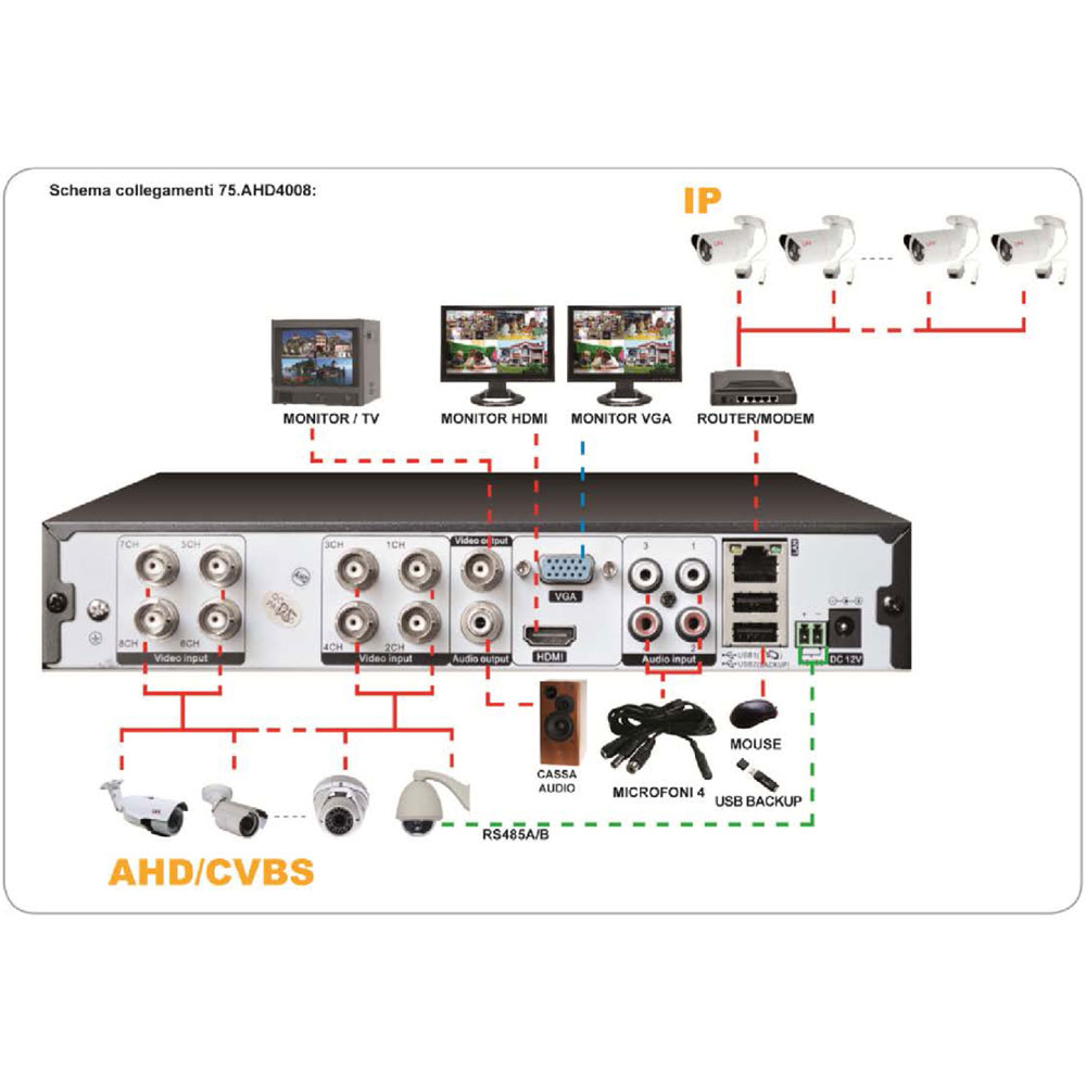 BNC 8CH IN IP 8CH tramite RJ45 |
