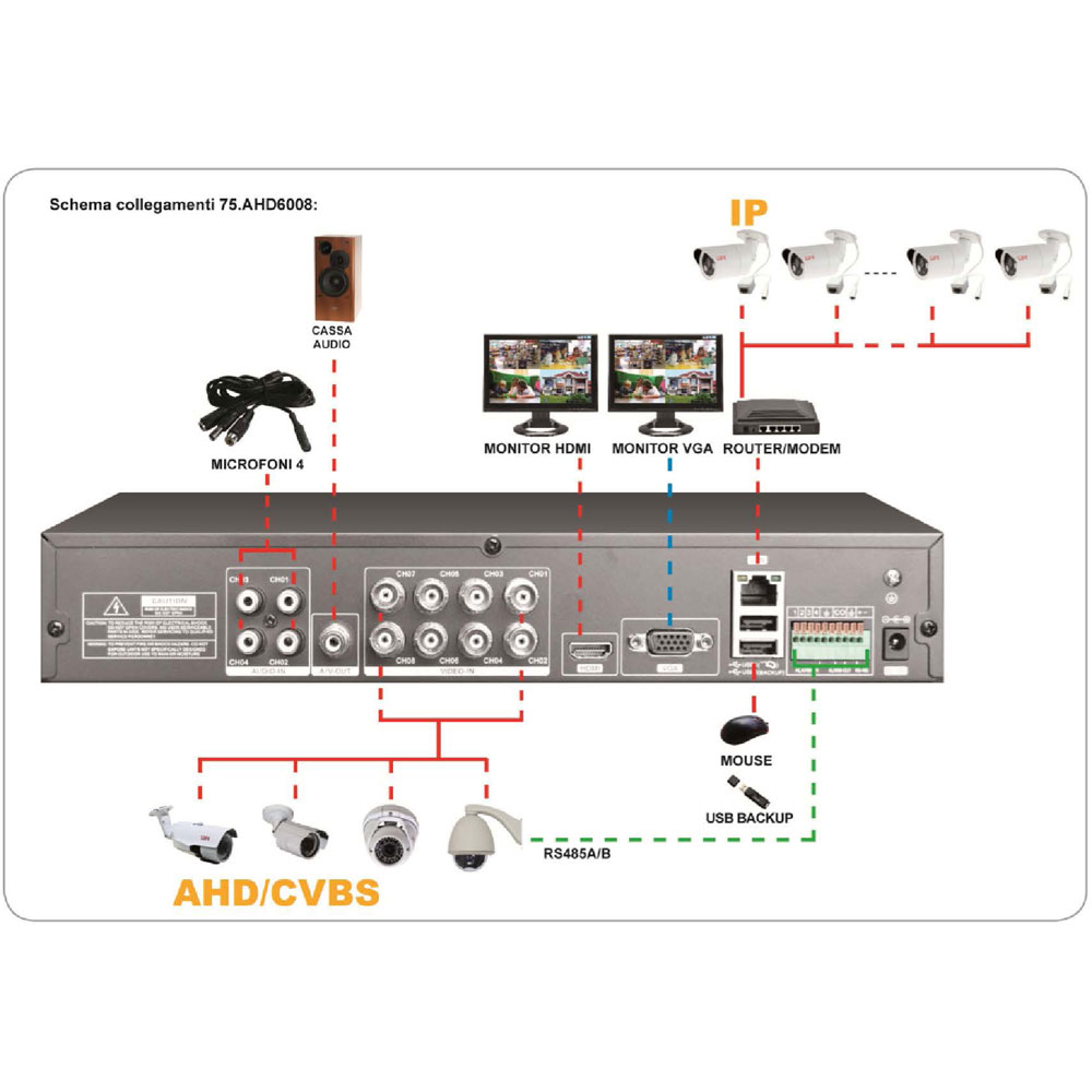 BNC 8CH IN IP 16CH tramite RJ45 |