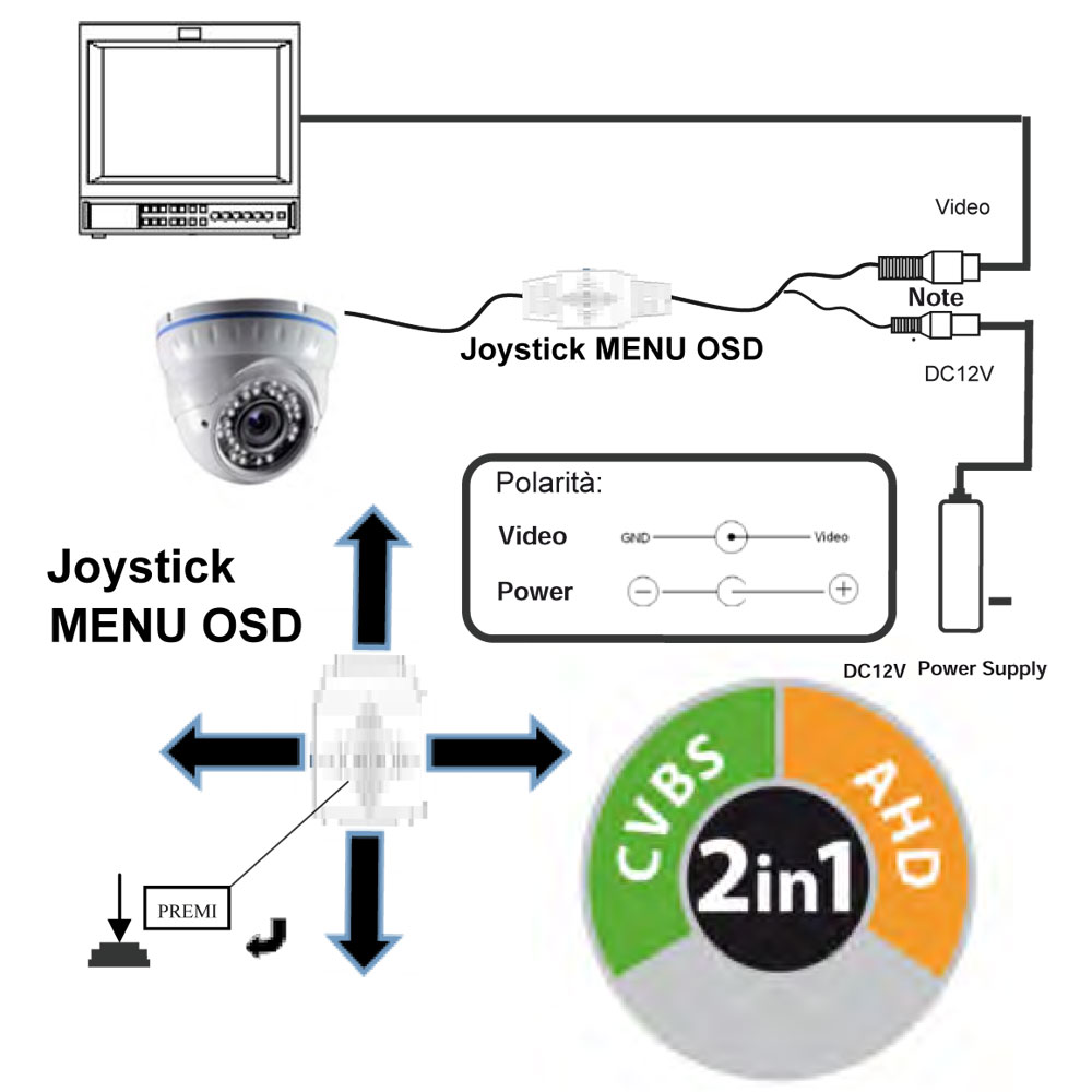Telecamera AHD da esterno o interno a colori, Day-Night,Telecamera di alta qualità, tenuta stagna IP65. Lente 2.8-12mm. Funziona con sistemi analogici tradizionali e con sistemi AHD.