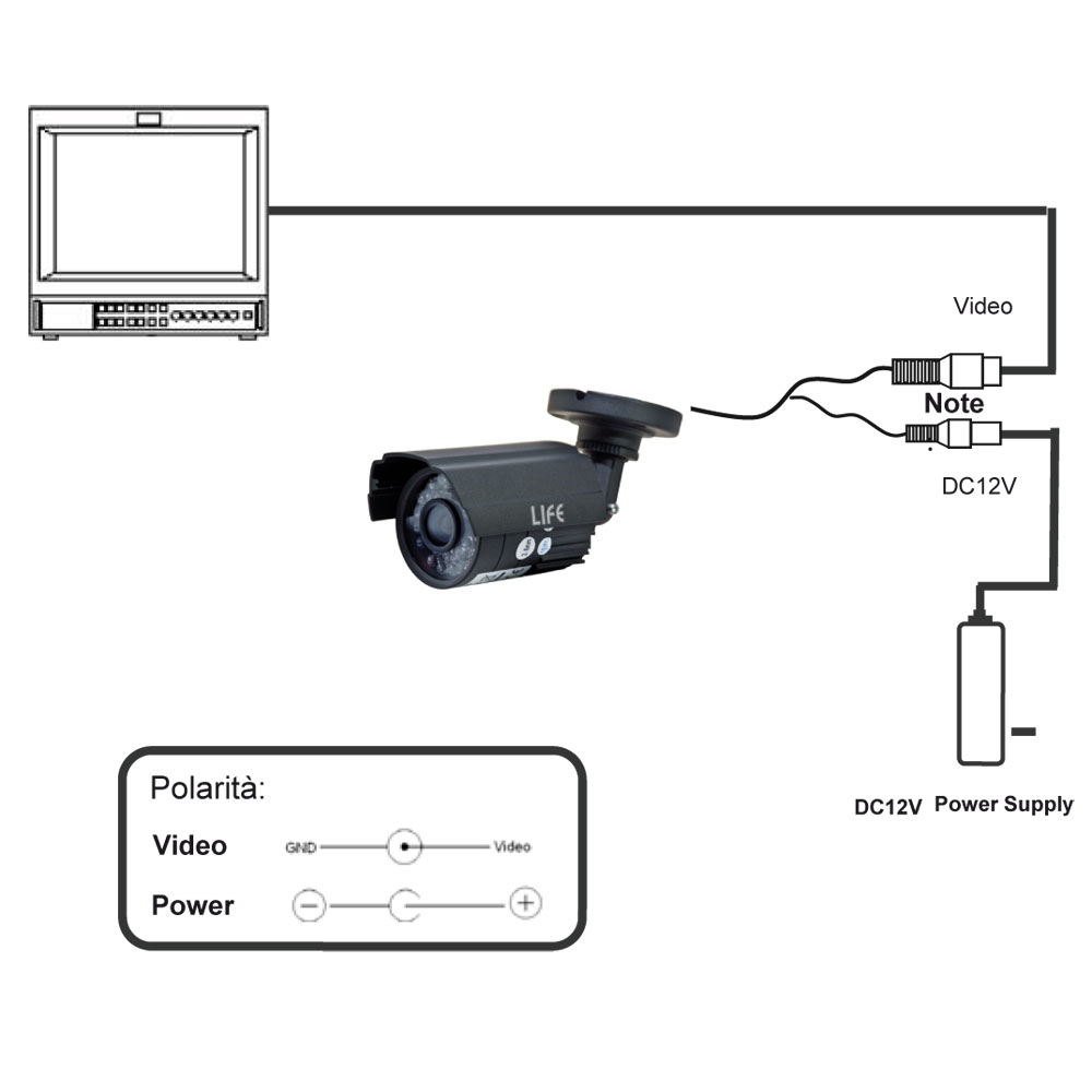 Day-Night,Telecamera di alta qualita', tenuta stagna IP65. Ottica 3.6 mm. sensore Omnivision, 24 led IR. Compresa di staffa di fissaggio. Il cavo scorre all'interno della staffa