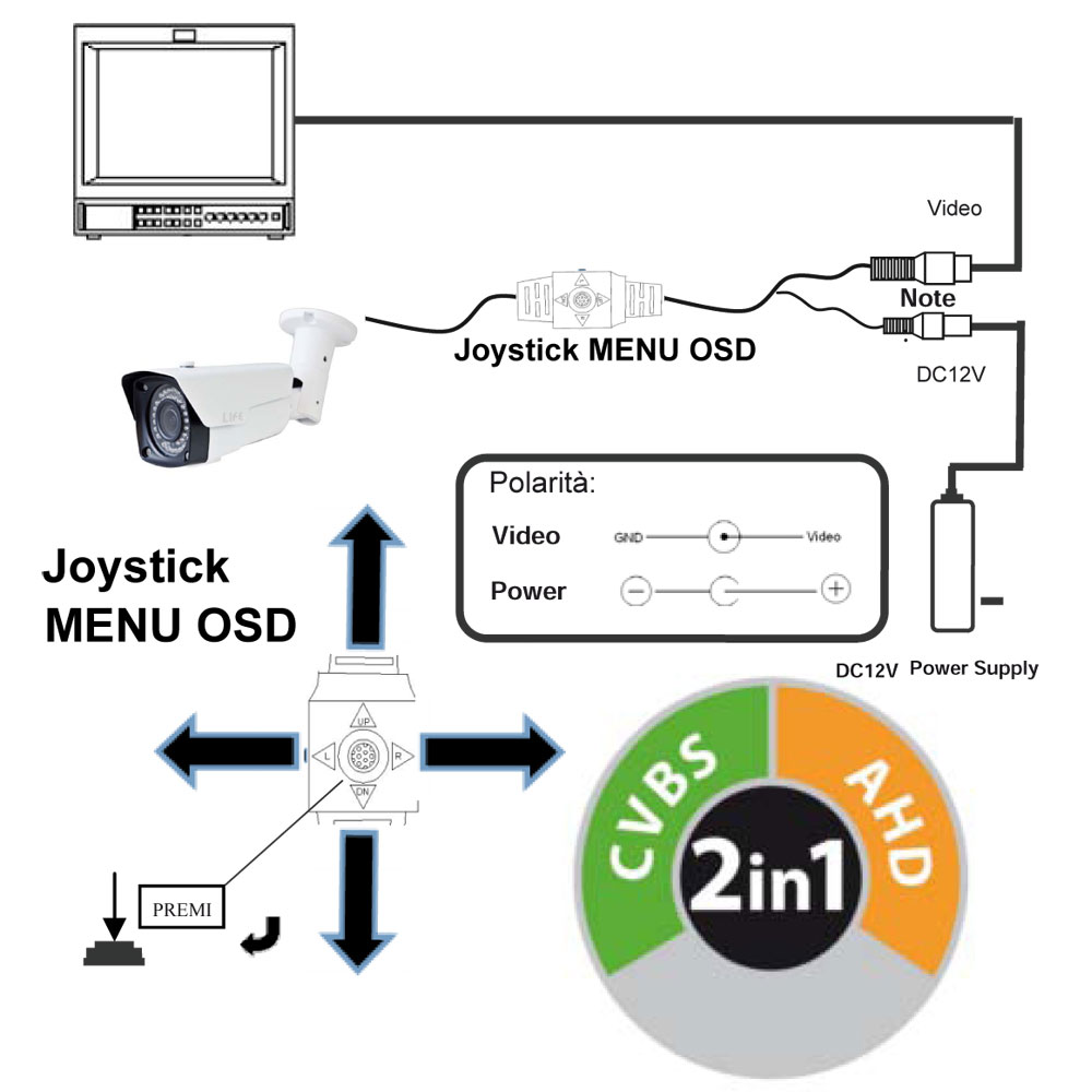 Telecamera AHD da esterno o interno a colori, Day-Night,Telecamera di alta qualità, tenuta stagna IP65, 2Mpx 1080P/960H . Lente varifocale 2.8-12 mm. Funziona con sistemi analogici tradizionali e con sistemi AHD