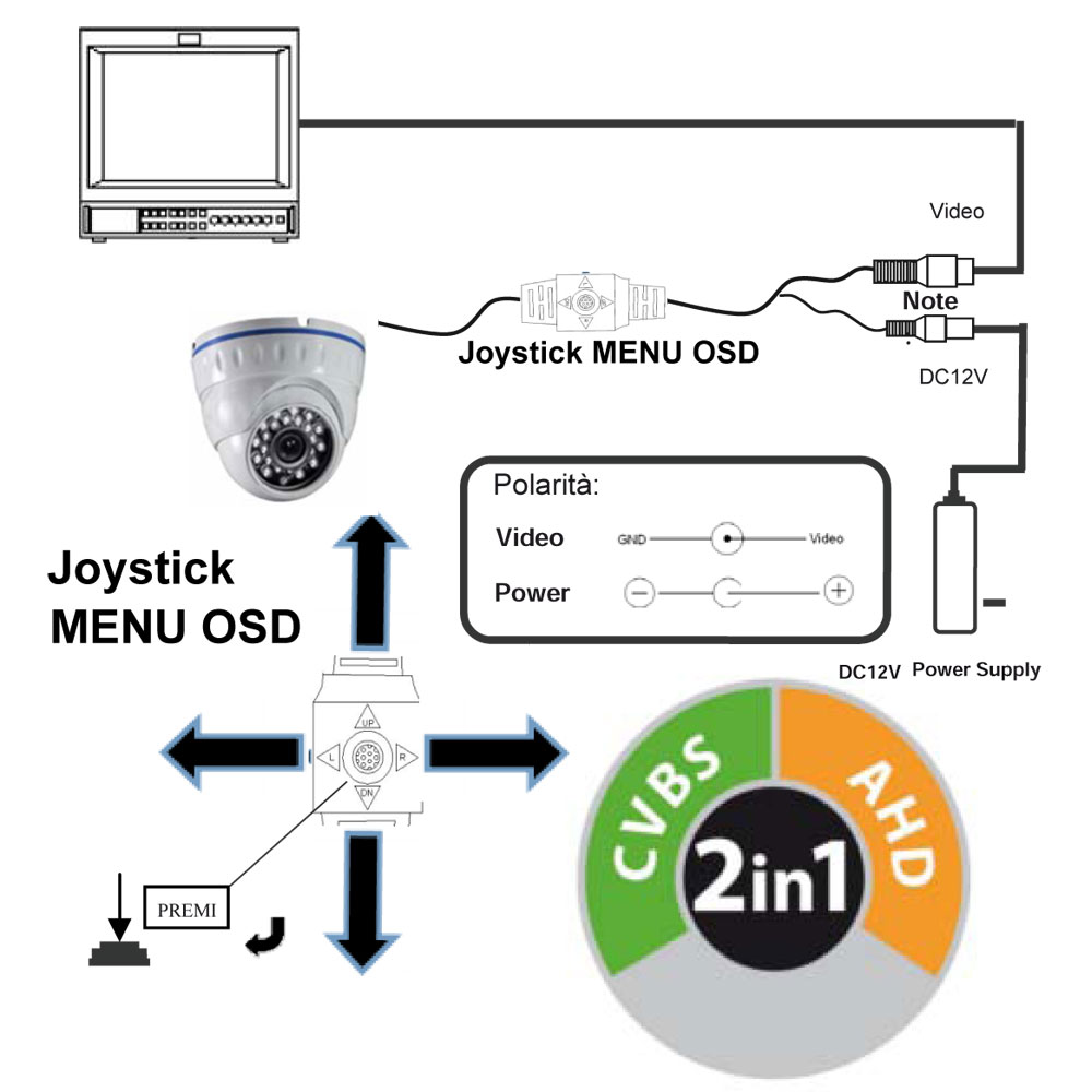 Telecamera AHD da esterno o interno a colori, Day-Night,Telecamera di alta qualità, tenuta stagna IP65, 2Mpx 1080P/960H . Lente Fissa 3,6mm. Funziona con sistemi analogici tradizionali e con sistemi AHD