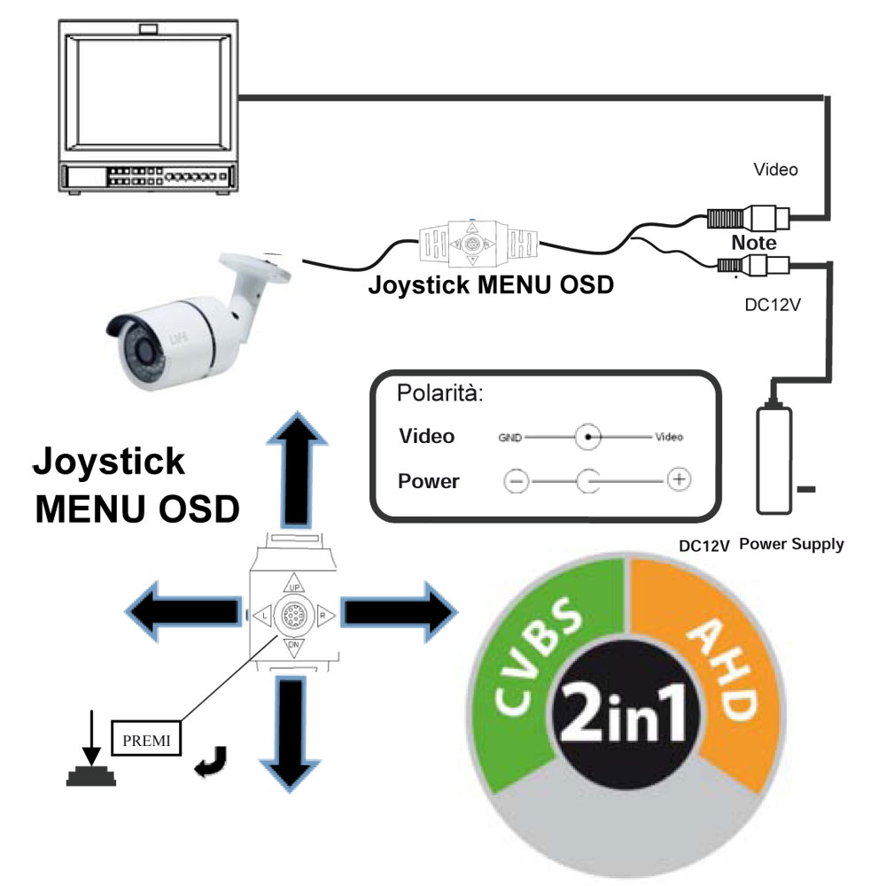 Telecamera AHD da esterno o interno a colori, Day-Night,Telecamera di alta qualità, tenuta stagna IP65, 2Mpx 1080P/960H . Lente fissa 3,6mm . Funziona con sistemi analogici tradizionali e con sistemi AHD