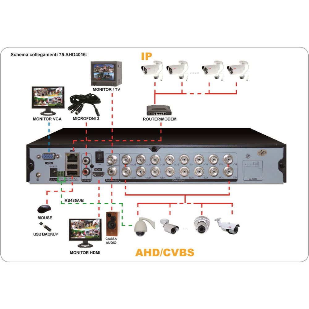 BNC 16CH IN IP 8CH tramite RJ45 |