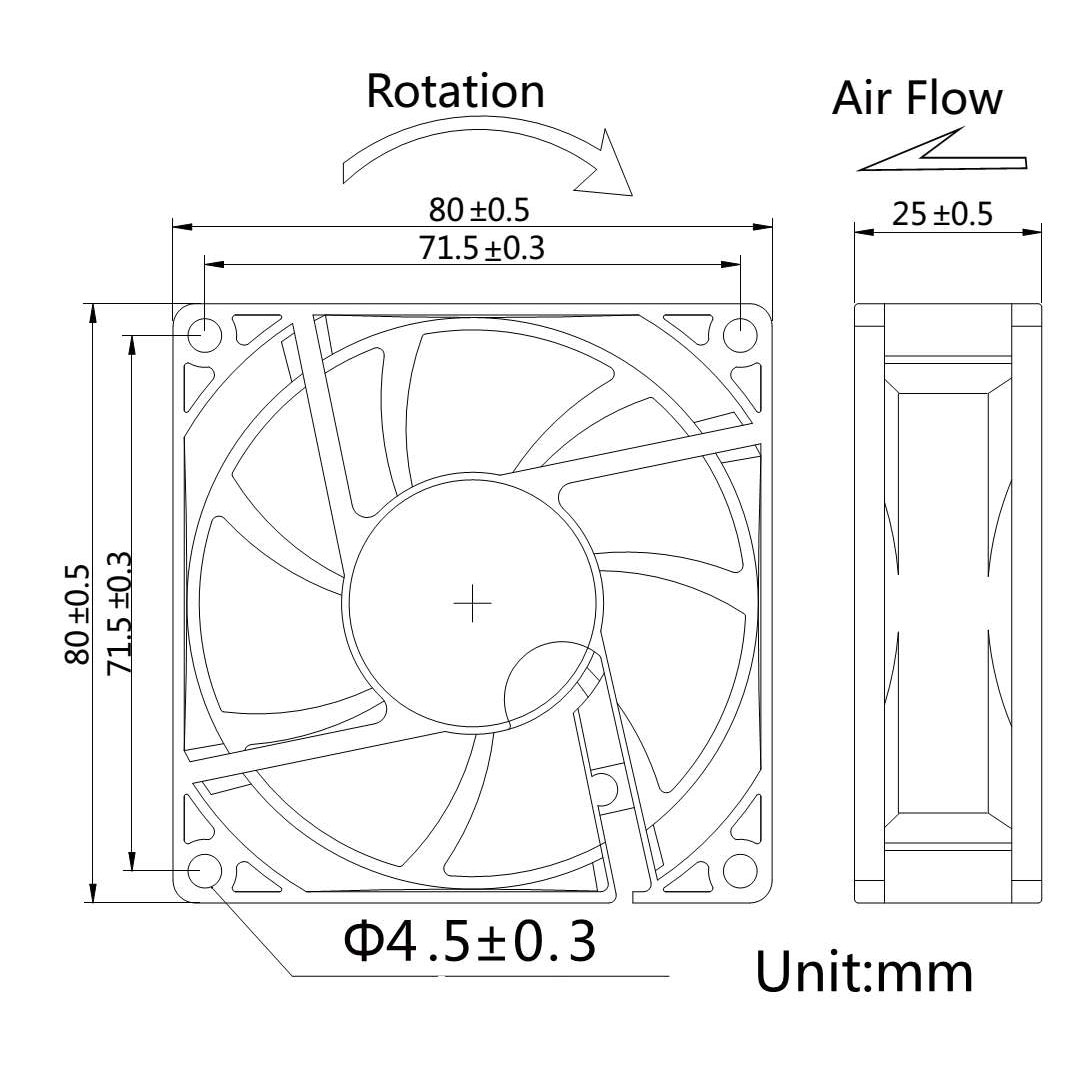 • Dimensione totale della ventola cm 8x8x2,5, possono essere usate su alimentatori, per raffreddare Hard Disk, CPU, altri dispositivi.