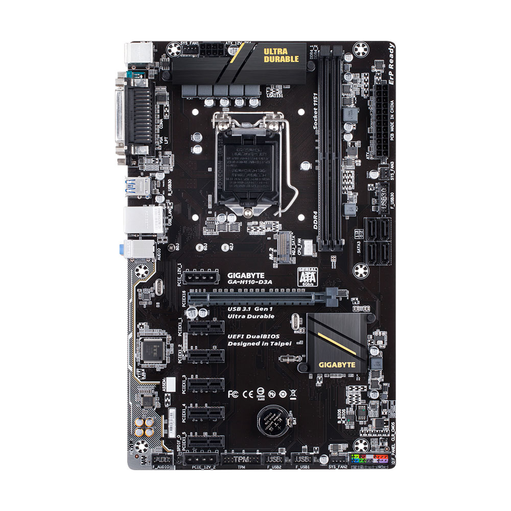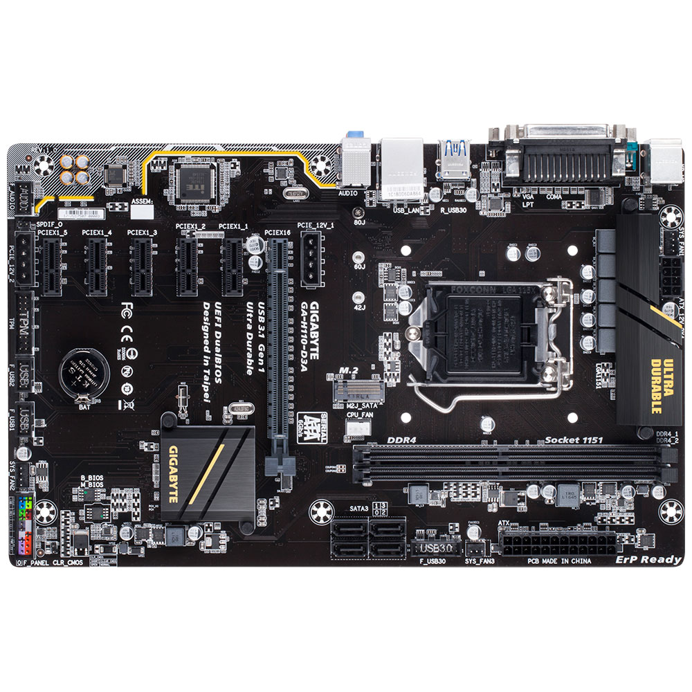 La scheda madre H110-D3A Bitcoin Edition di Gigabyte, in fattore di forma ATX, dispone del chipset H110 compatibile con i processori Skylake su socket LGA 1151.