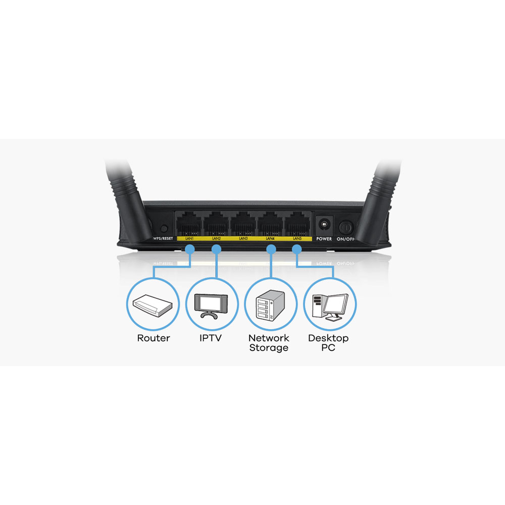 Numero porte LAN : 5 N Velocità LAN : 100 Mbps Velocità Wireless : 300 Mbps Mbps Banda di frequenza : 2,4 Ghz Wireless Security : Si