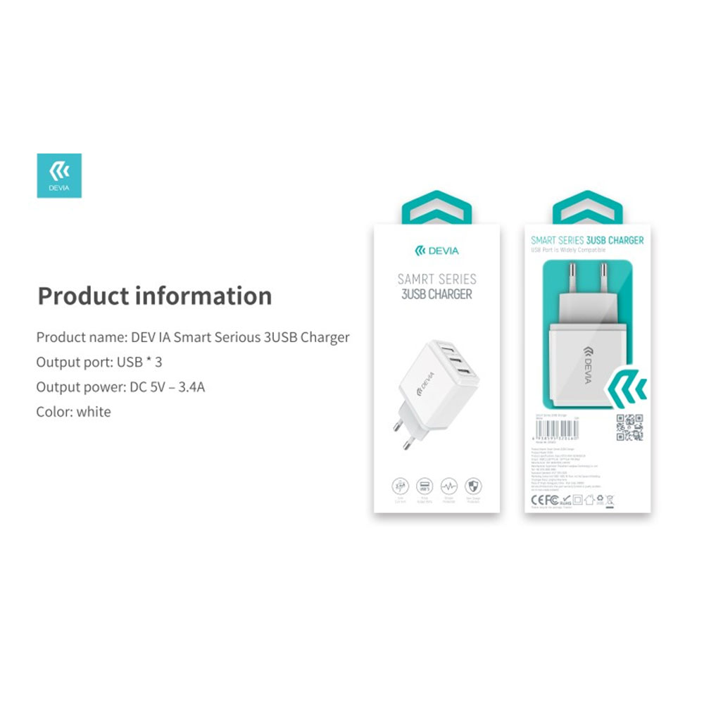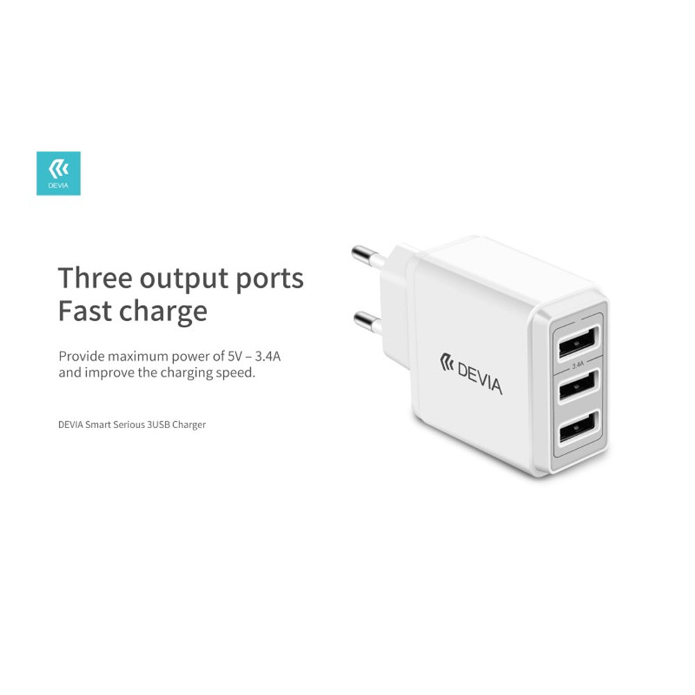 Alimentatore da muro con tre uscite USB per carica contemporanea di 3 Device 3.4 Amper 17 Watt