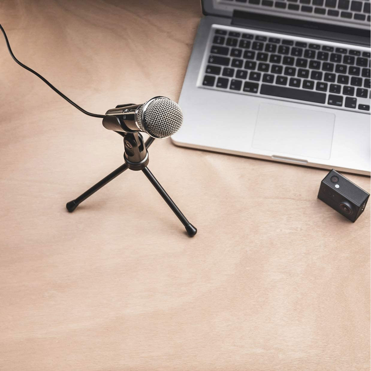 Microfono ad alte prestazioni dotato di interruttore di disattivazione audio e base a treppiede, per una riproduzione vocale naturale e di straordinaria qualità.