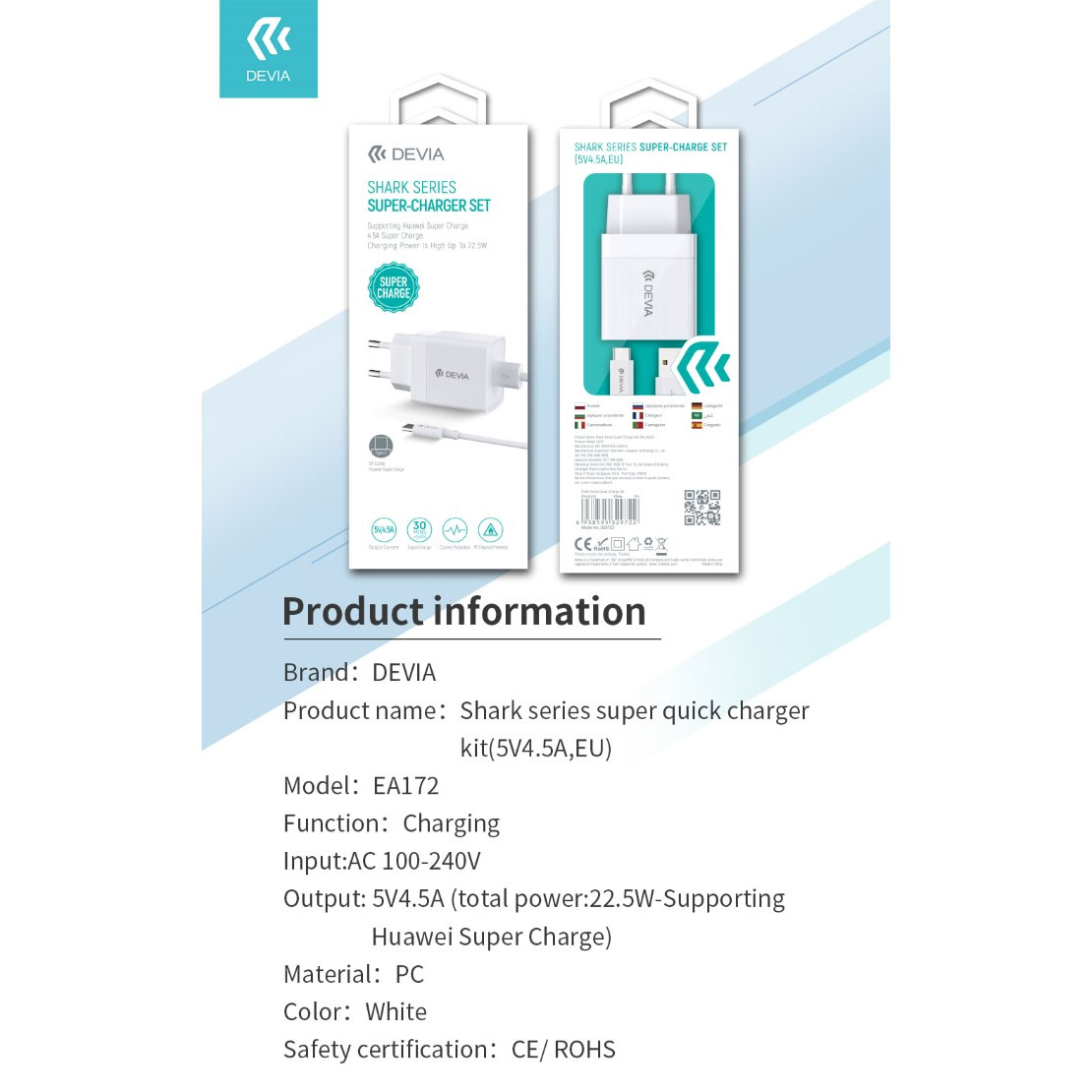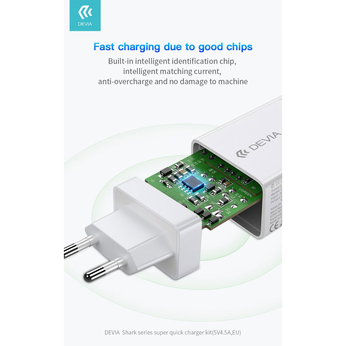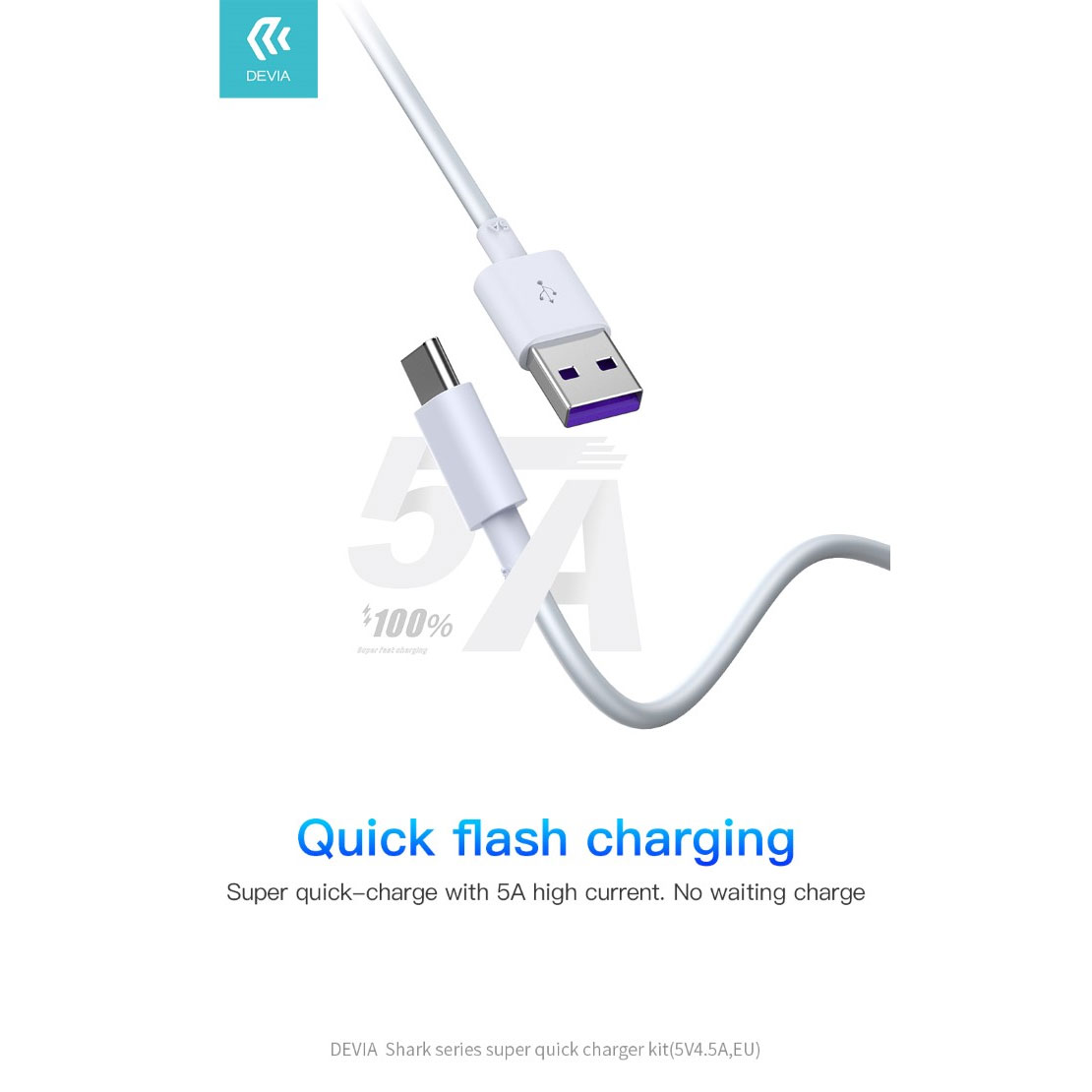 Suit Carica Batteria 4.5A/5V (22.5W) e Cavo Dati Per Smartphone Android " Type-C" 1mt - KIT COLORE BIANCO