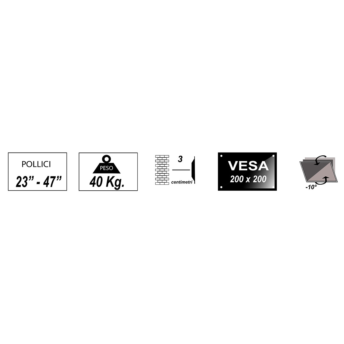 Monitor e Tv da 32 a 47 pollici, con un peso fino a 40 kg - Per schermi standard VESA 75x75, 100x100, 200x200, 400x400.