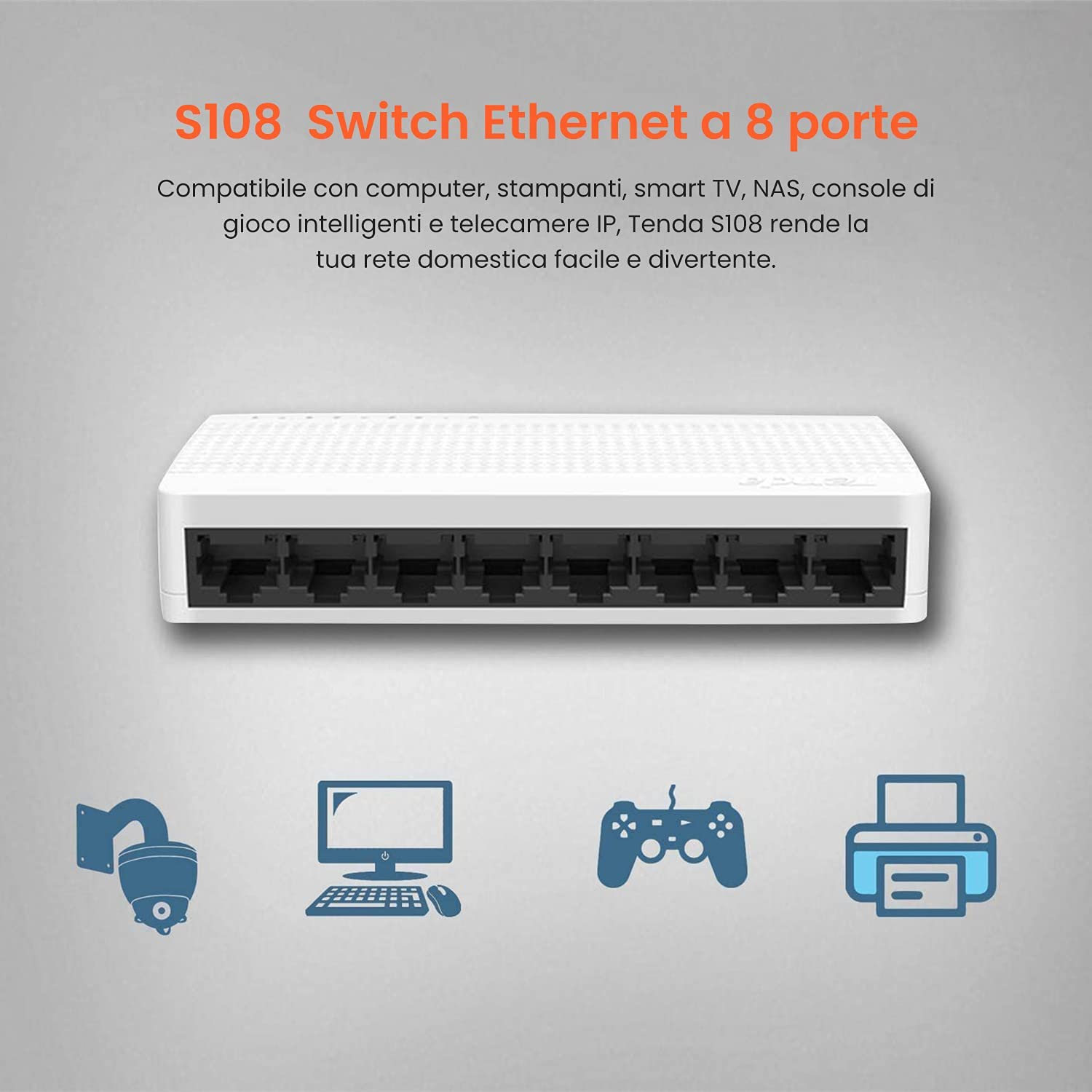 Qualsiasi sia la tua locazione, qualsiasi divertimento nella navigazione tu voglia o se vuoi aggiungere più porte Ethernet alla tua rete, l'S108 può soddisfare tutte le tue esigenze per espandere la tua rete con facilità. Inoltre è anche un ottimo switch SOHO con un prezzo competitivo.
