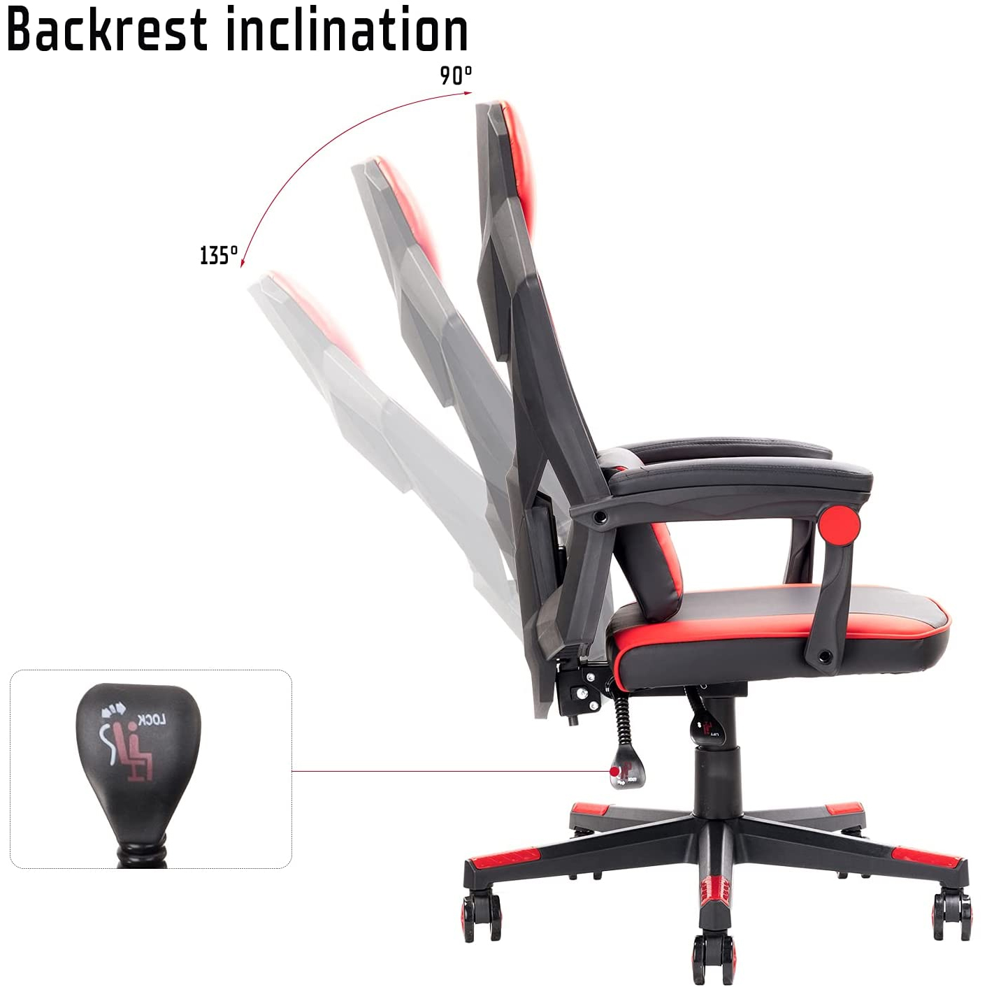- Sedia gaming regolabile in Altezza ed inclinazione; altezza da 116 cm a 126 cm; angolo di reclinazione da 90° a 135°