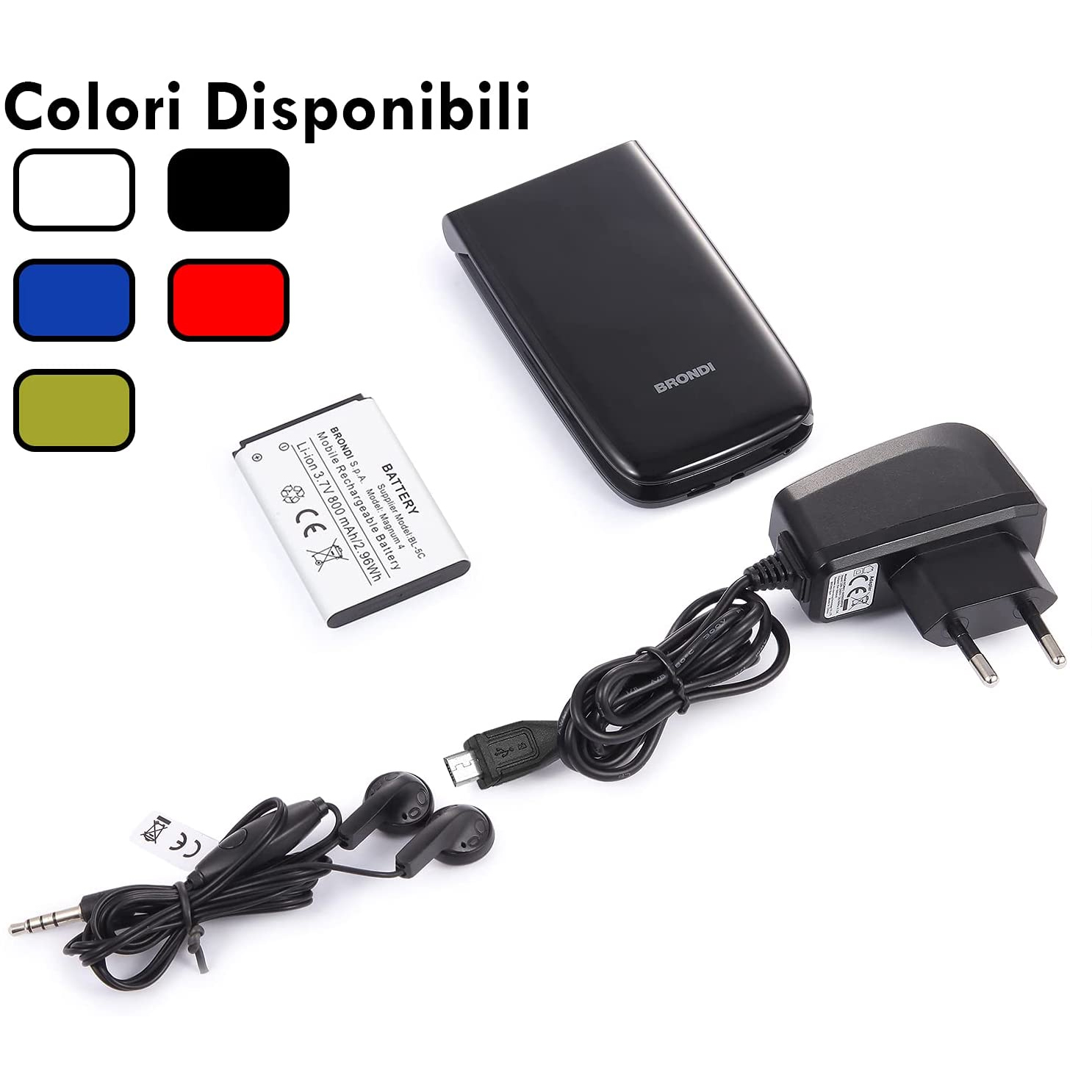 • TELFONO CELLULARE BRONDI MAGNUM 4 MAXI DISPLAY CON FLIP ATTIVO GSM DUAL-SIM DISPLAY 2.8" Fotocamera 1.3 Mp COLORE NERO