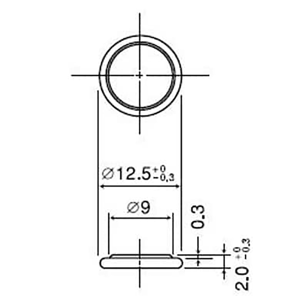 Batteria a bottone CR220 Panasonic è dotata di una tensione nominale di 3 V con una capacità di 35 mAh - ha un diametro di 12,5 mm e un'altezza di 2,0 mm - pin terminali della scheda di circuito stampato.