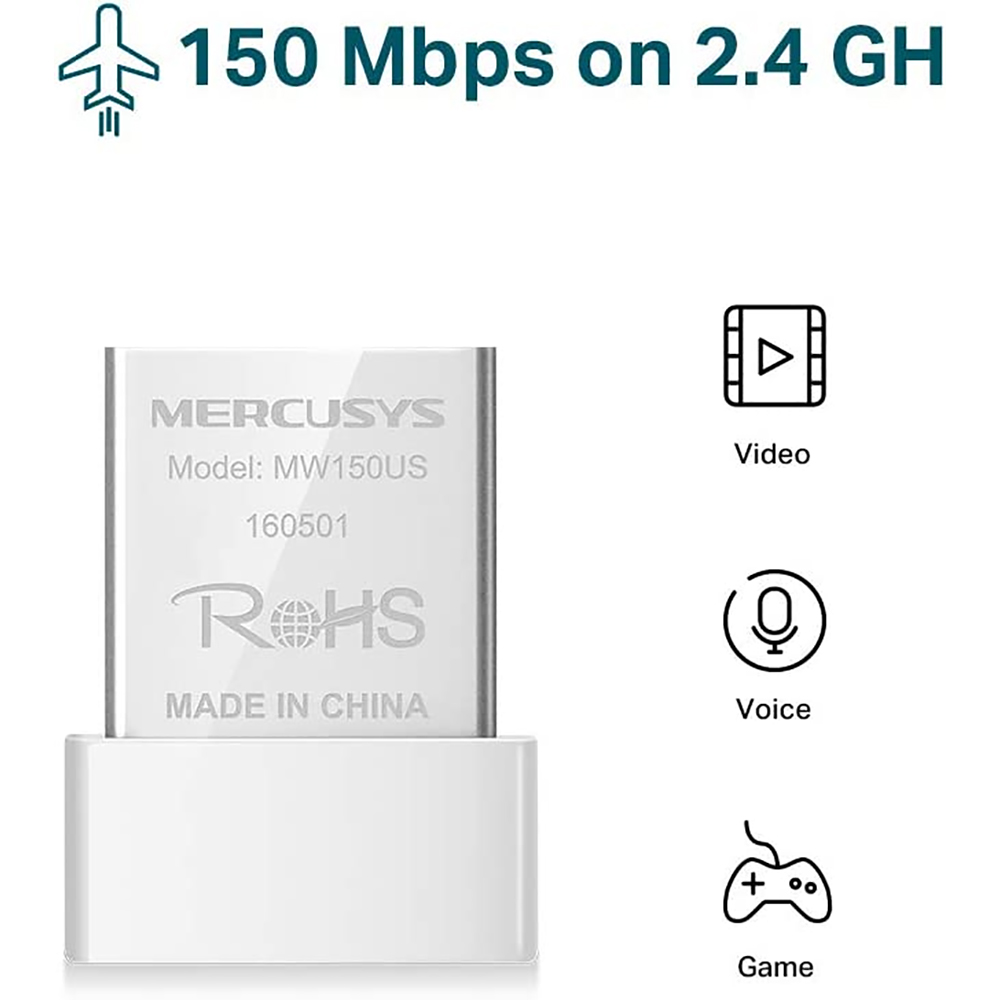 Il nano adattatore USB wireless N MERCUSYS MW150US consente di connettere un computer desktop o notebook ad una rete wireless e l'accesso ad una connessione Internet ad alta velocità. E' stato progettato per essere il più pratico possibile.