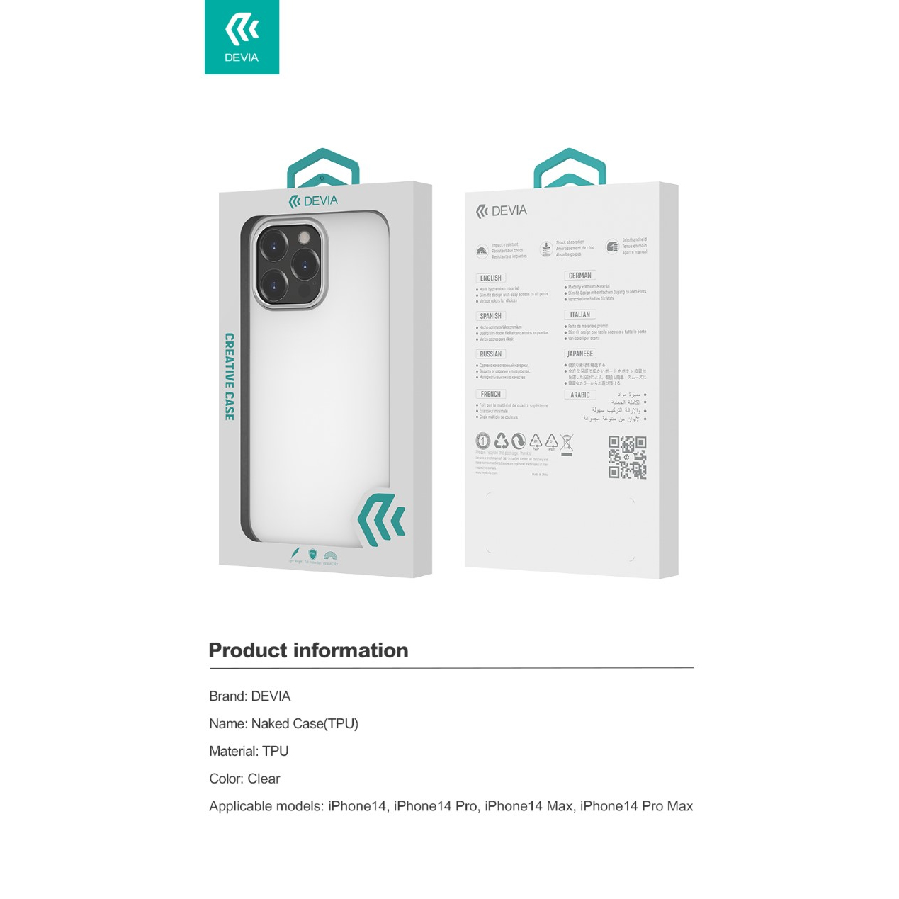 DEVIA CUSTODIA COVER TPU SOFT PER TELEFONO CELLULARE iPhone 14 6.1"