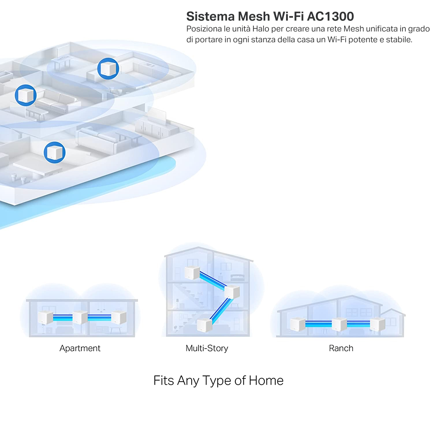 Sistema Wi-Fi Mesh AC1300 - Rete wireless unificata per tutta la casa fino a 320 mq di copertura - Halo H30G (confezione da 3).