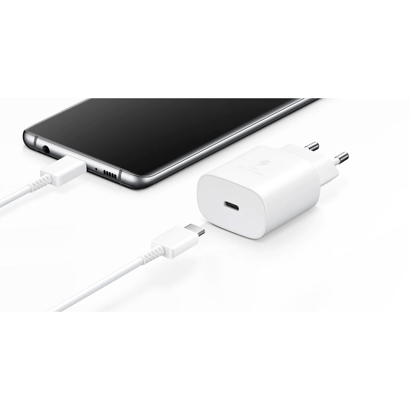 Il caricabatterie Samsung con tecnologia Super Fast Charge caricherà il tuo telefono dallo 0 al 50% in appena mezz'ora. Questo ti tiene offline per ore. Il caricabatterie USB-C da 25 W funziona con qualsiasi telefono dotato di ingresso USB-C. Carica telefoni compatibili con lo standard Power Delivery 3.0 o PPS , altri con 2A.