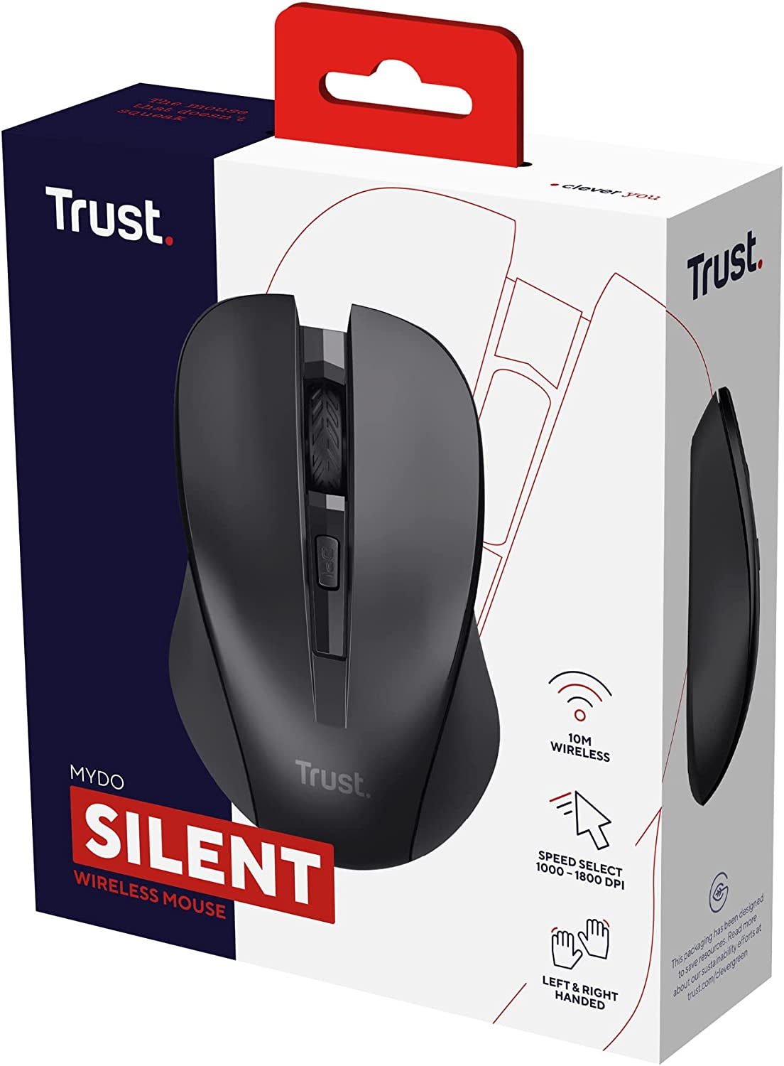 Trust Mydo Silent 1800 DPI - 2.4 GHz wireless: tecnologia a 2.4 GHz, distanza di lavoro 10 mt. - Adatto per destrorsi e mancini - Colore BLACK